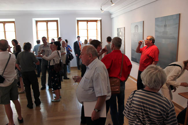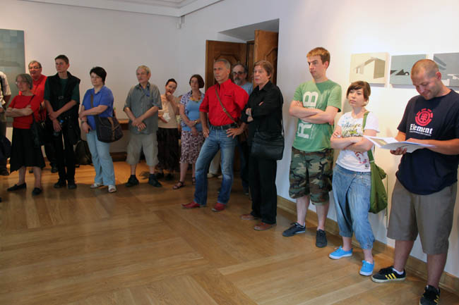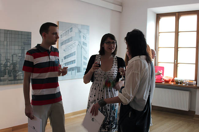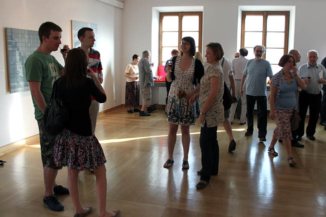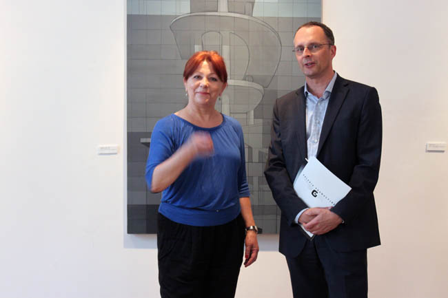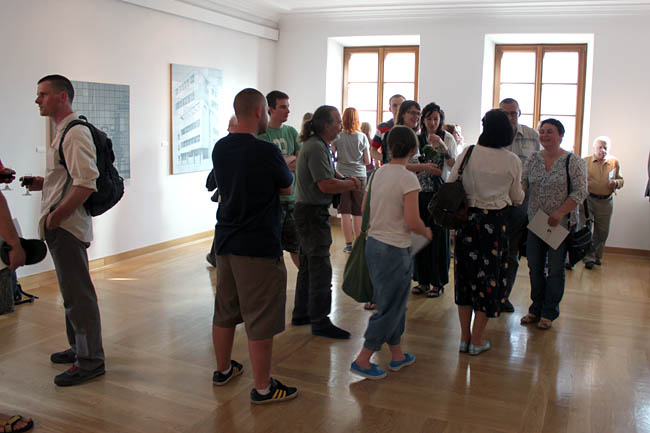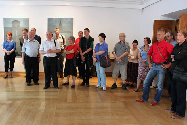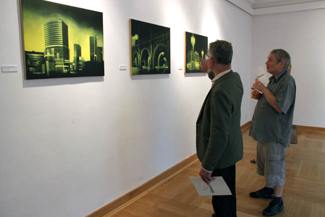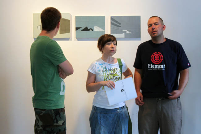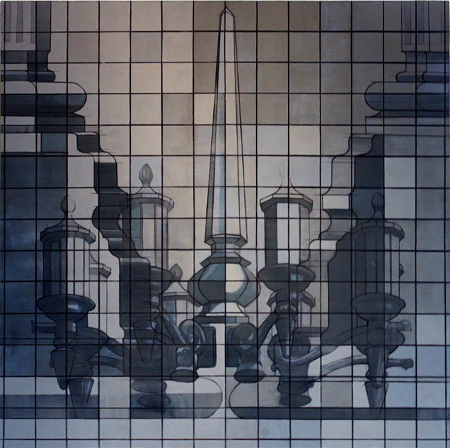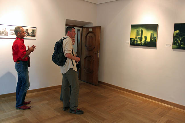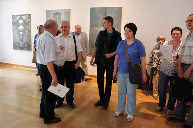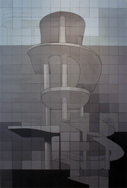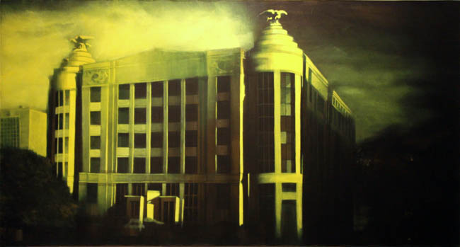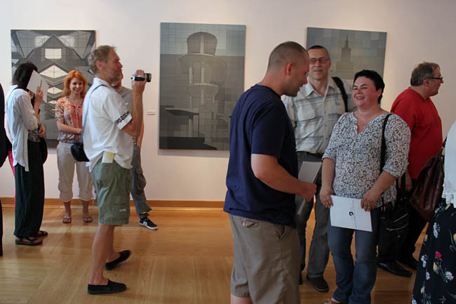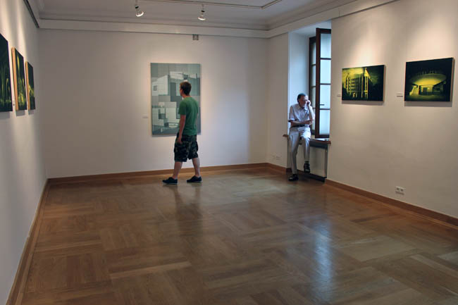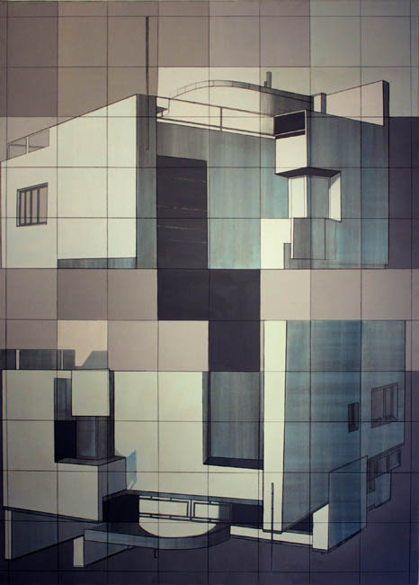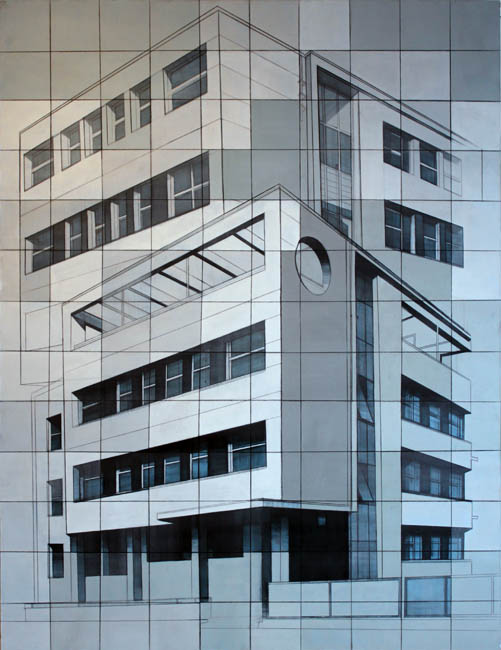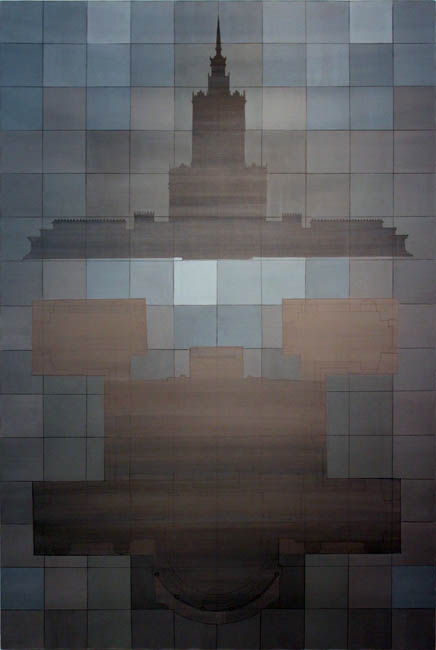 W pierwszej sali galerii zobaczymy warszawskie budynki - symbole PRL i ikony modernizmu - które artystka wpisuje w układy linii i schematy. Dobrowolska umyślnie "wyrywa" je z kolorowej i zabudowanej dziś stolicy. Pokazane w szarych kolorach stoją samotnie. Namalowane przez Dobrowolską obiekty, jakie zachowała w pamięci z dzieciństwa to m.in. MDM, PKiN, Baseny Legii, czy Willa Frascati. Takie, które warte są zapamiętania, a mogą zniknąć z tkanki miasta jak wcześniej Supersam i pawilon Chemii. Wpisując je w układy sprawia, że stają się płaszczyznami, znakami.