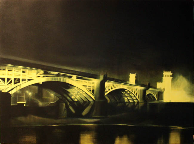 Z kolei w mniejszej sali zobaczymy serię prac pt. GOTHAM. Malarka pokazuje w niej Warszawę w mrocznej scenografii. Z jednej strony budynki i mosty (PKP Powiśle, Most Śląsko-Dąbrowski, Dom Pod Orłami) stoją samotnie w ciemnościach, z drugiej - oświetlone są nienaturalnym mocnym światłem. Wyglądają jak kadry z filmów i komiksów o superbohaterach.