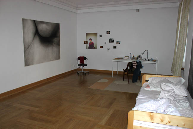 Mniejsza sala galerii z przestrzenią osobistą została zaaranżowana jak prywatny pokój artystki. Znajduje się tam łóżko z nie zasłaną pościelą, osobiste zdjęcia, biurko z rozrzuconymi przedmiotami, krzesło, a nawet firanki w oknie. Zabiegi te sprawiają, iż widz ma wrażenie jakby ktoś przed chwilą wyszedł z pokoju. Czerniawska przekracza w ten sposób granice pomiędzy artystą a odbiorcą, „wpuszcza” nas do swojego prywatnego życia. W tej sali eksponowane są także wydruki ukazujące zbliżenia ludzkiego ciała. Dla kontrastu druga z sal prezentuje przestrzeń wyniosłą, przywodzącą na myśl wnętrza muzealne eksponujące najważniejsze dzieła z kolekcji. Świadczy o tym zaprezentowanie tylko jednej pracy. Wymiary eksponowanego obiektu przypominają pejzaż. Jednakże temat dzieła i jego wykonanie jest zupełnie inne: zdjęcie owłosionej części ciała ludzkiego sprowadzone do ciężkiej do jednoznacznego określenia, wręcz abstrakcyjnej formy.