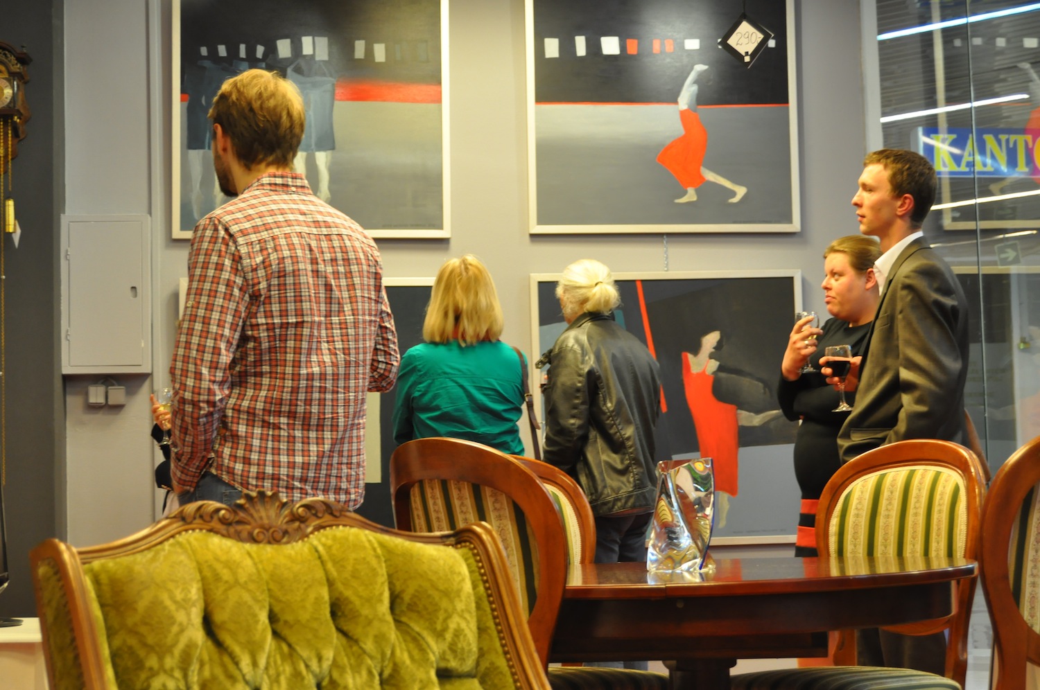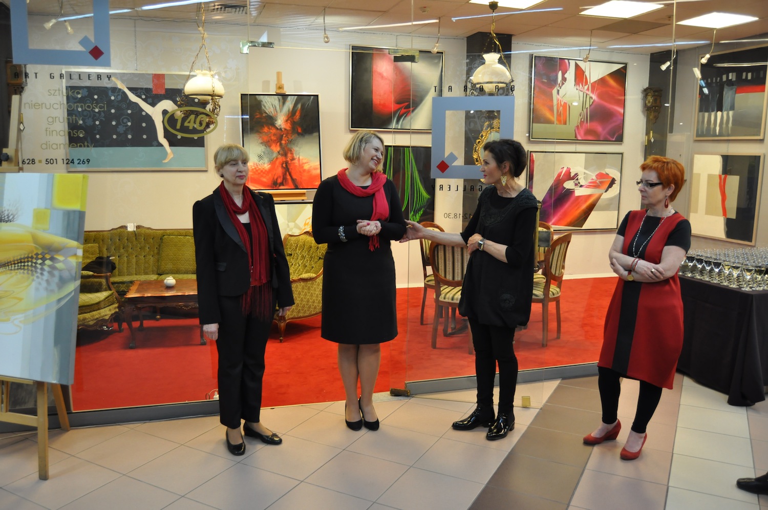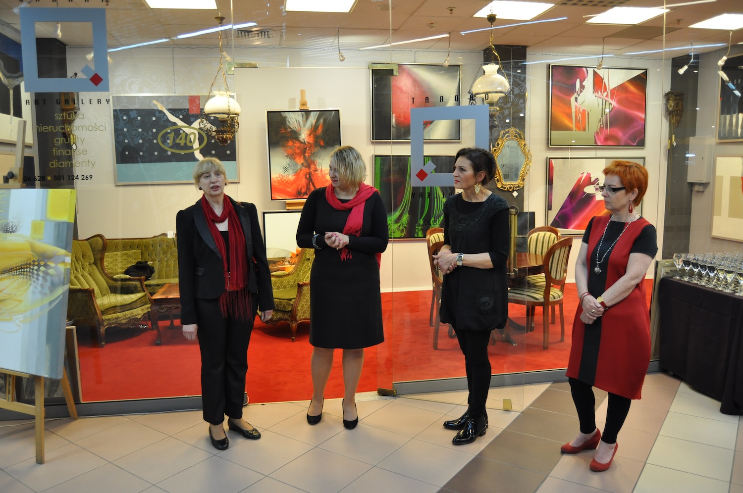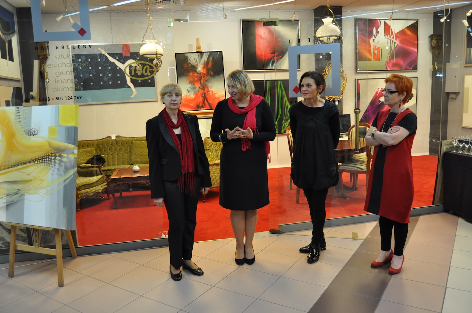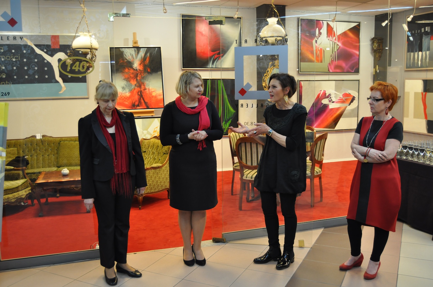 Otwierając wystawę Joanna Dembowska, właścicielka galerii, tak ją zrecenzowała: wystawa ta jest podsumowaniem ostatnich lat pracy obu artystek. Z jednej strony nurty muzyczne Aliny Dorady przenikające się płynnie z motywami florystycznymi i symbolicznym pejzażem - z drugiej zaś - przeżywana w absolutnej ciszy ekstaza tańca baletowego na scenie - powiedziała Joanna Dembowska.
