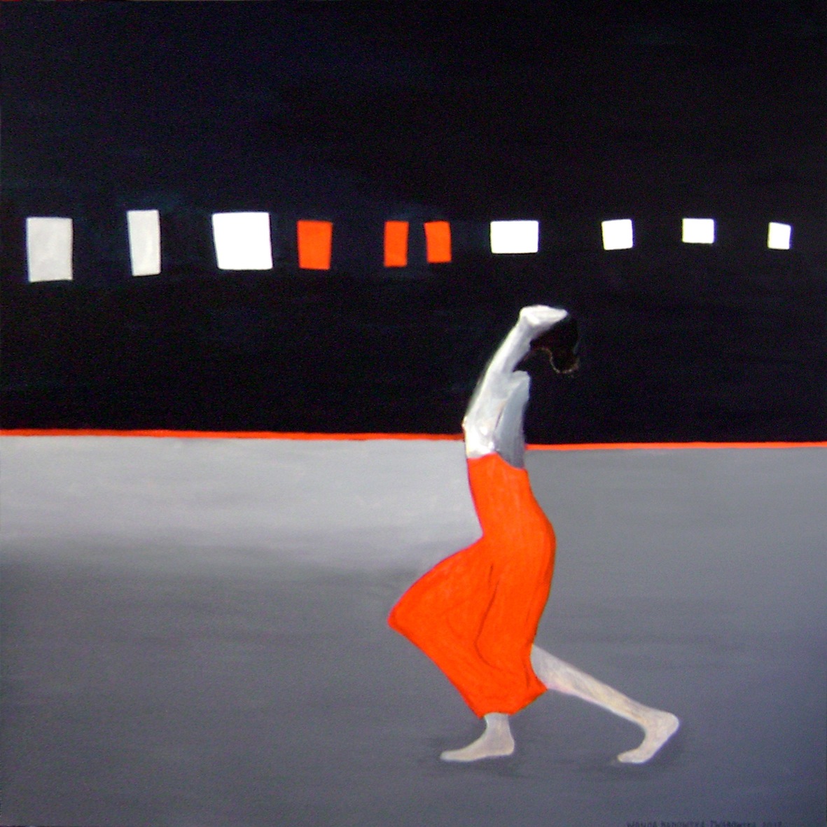 W poszczególnych obrazach Aliny Dorady-Krawczyk dostrzegamy podsumowanie kilku kierunków, które mogliśmy podziwiać w jej twórczości na przestrzeni dziesięciu ostatnich lat. Ale są tu też zapowiedzi nadchodzących nurtów tak sugestywne, iż widz z niecierpliwością oczekuje już następnej wystawy. W cyklach tanecznych Wandy Badowskiej-Twarowskiej przeżywamy stały rozwój kontemplacji tańca, jako najwyższej ze sztuk scenicznych. Obrazy jej są tak sugestywne, tak sensytywne, iż patrząc na taniec w nich uchwycony, zapominamy o muzyce i o dźwiękach, jakie podczas ruchu tancerza na scenie można usłyszeć. Może to będzie tajemniczy szmer stawianych stóp w pointach na deskach sceny, a może bicie serca…