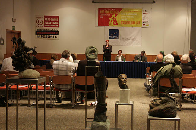 Spotkanie pod hasłem „W pół drogi” odbyło się równo na półmetku działań artystycznych i było doskonałą okazją do pierwszych podsumowań. Zaproszeni goście obejrzeli krótki film oraz pokaz zdjęć z ostatnich dwóch tygodni pleneru, makiety prac realizowanych na Polu Mokotowskim, a także małe formy rzeźbiarskie twórców biorących udział w projekcie. Można było również porozmawiać z artystami o ich pracy.