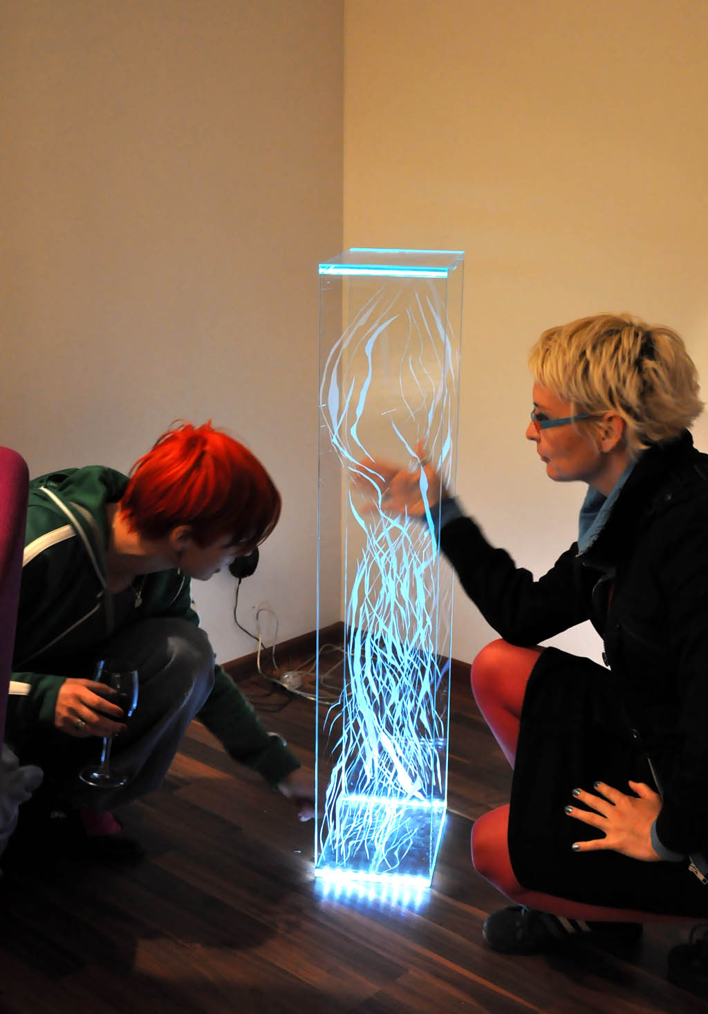 Dużym zainteresowaniem cieszyło się również oświetlenie. Na wystawie zaprezentowano kilka ciekawych lamp. Kafti Design zainspirowały się Armenią i Śląskiem, Puff- Buff Design inspiracji poszukali w muzyce i modzie. Ich "powietrzne" lampy budzą niesamowite emocje. Jeremi Nagrabecki odwołał się do swego zainteresowania fotografią, jego lampa Camera Obscura...jest rzeczywiście prawdziwą Camerą Obscurą z obrazem żarówki wewnątrz. Biuro Kreacja i AZE Design zaproponowali bardzo oryginalne wieszaki na ubrania. Na przykład AZE inspirowała się słupami wysokiego napięcia. Baśniowe lustro Świtezianka wymyśliły Lapolki, oglądający odbija się w tafli jeziora wśród magicznej roślinności. Znaki graficzne i rysunki znajdziemy w propozycji grupy Refre. Projektanci tworzą już na istniejących meblach, nadają im nowy kształt i kolor.