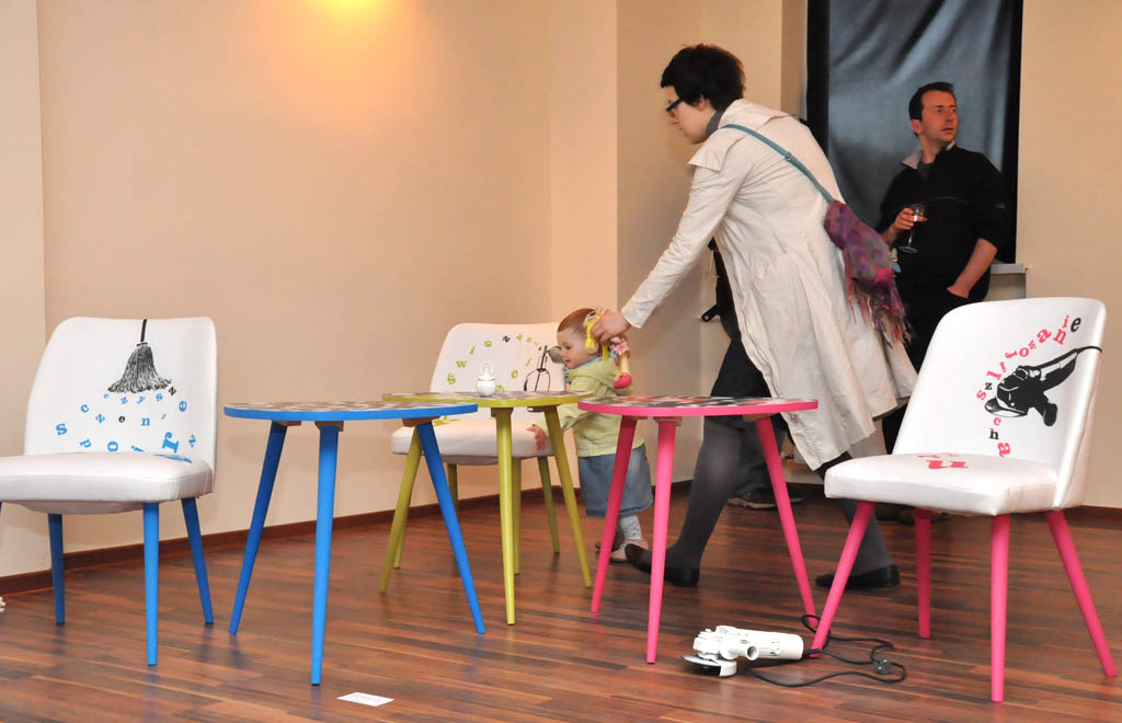 Biuro Kreacja zaprezentowała stół, krzesła i wieszak, wszystko z drewna, formy czyste, określone przez kształt. Natomiast siedziska grupy Malafor czy Lapolka, odwołują się do surrealnych wzorów. Lapolka zaprezentowała "gąbczastą" chmurkę do siedzenia, miękką i wygodną. Malafor stworzył wielką kość, zwaną kostką w abstrakcyjne pasy.Ich gazetniki także są pomysłowe i oryginalne w swojej budowie.