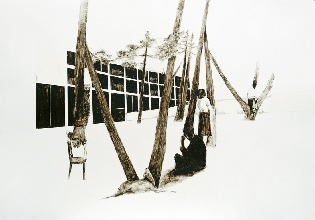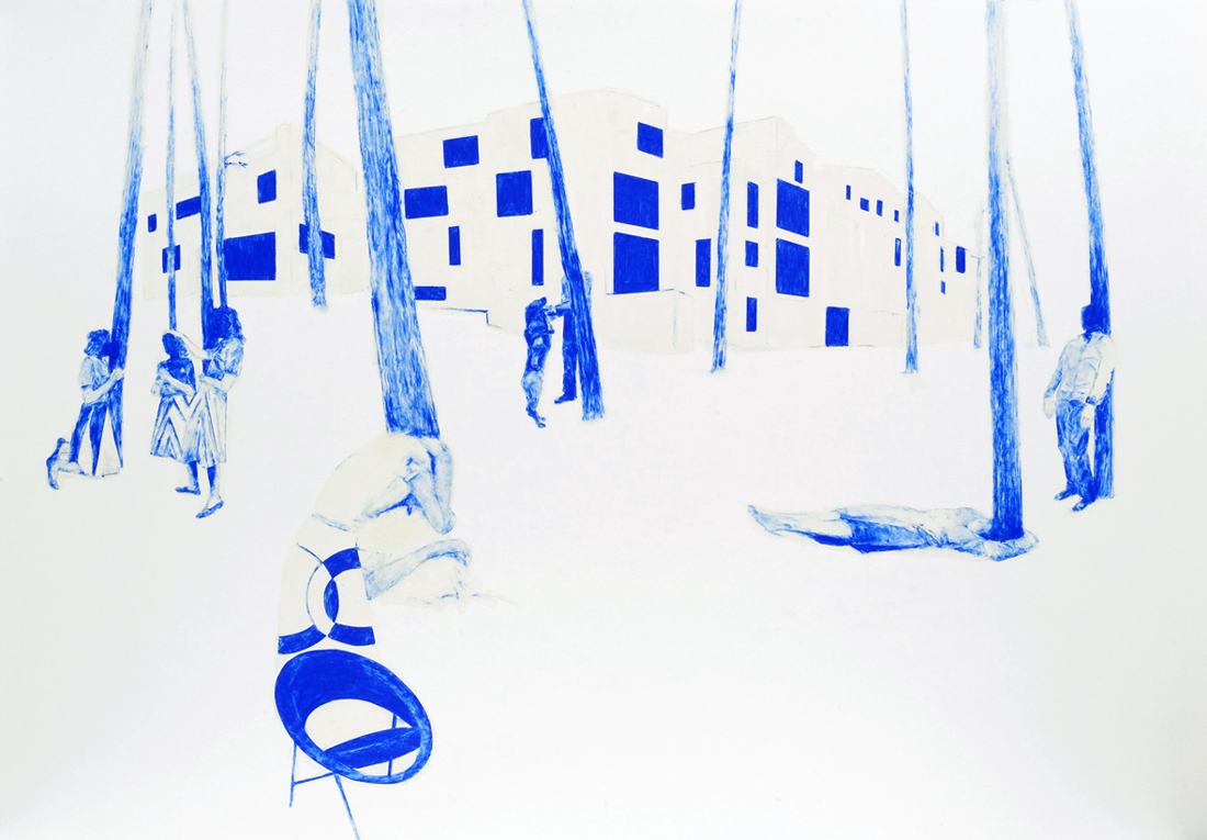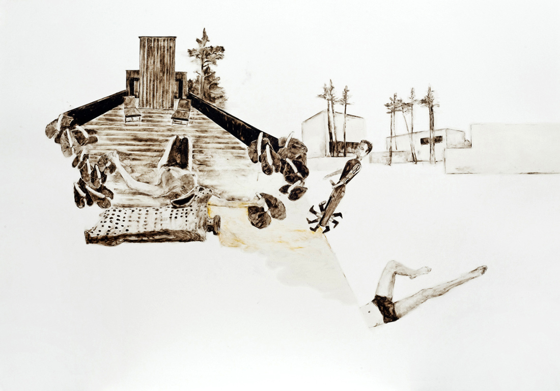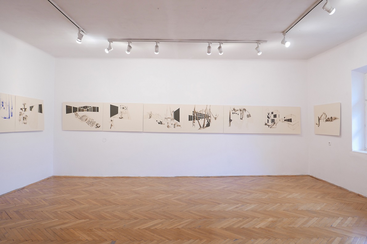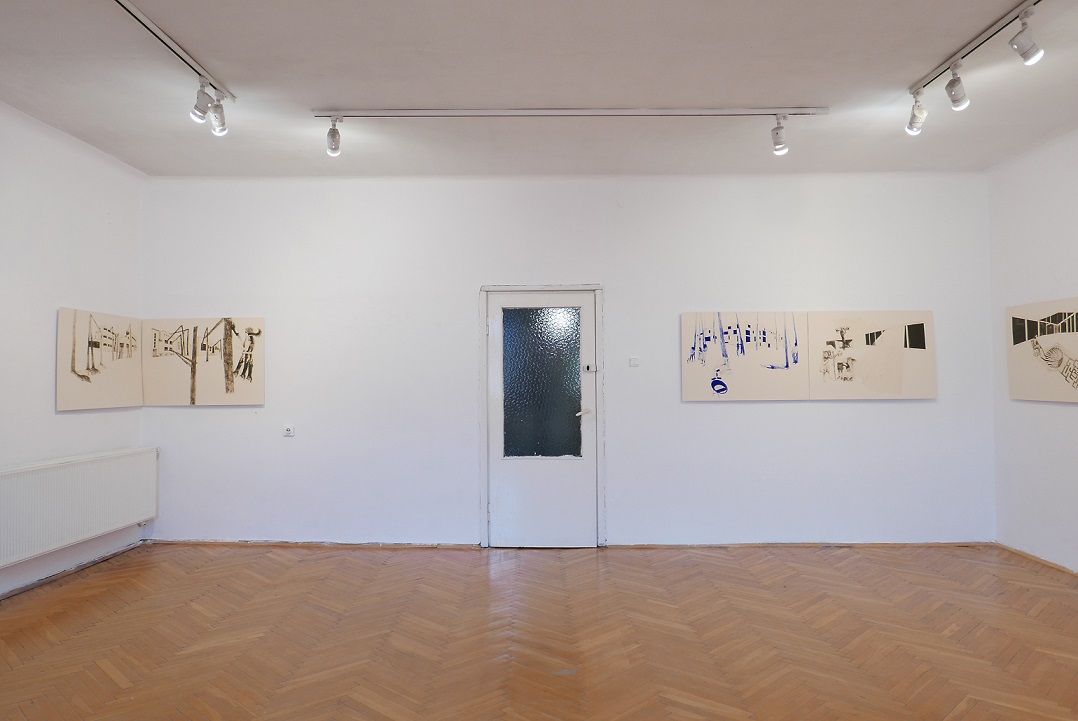 Pocztówki to 16 dużych pasteli na papierach, które powstały późnym latem i wczesną jesienią tego roku. Prace mają określoną kolejność i tworzą długi, naścienny fryz. Jest to poemat wizualny o intensywnej, onirycznej strukturze. Jego akcja dzieje się - o ile można tu mówić o „dzianiu się” - w otoczeniu segmentowej, modernistycznej architektury, której rytmiczność i przestrzenność są czymś w rodzaju partytury muzycznej tych utworów.