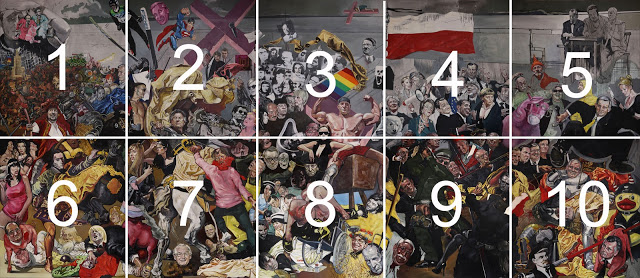Gwiazdy pop kultury, show biznesu, osobistości ze świata polskiej i światowej polityki, hierarchów kościelnych, bohaterów narodowych, sportowców, dziennikarzy, aktorów przedstawionych w dość absurdalnych konstelacjach. Przyjrzenie się bliżej temu obrazowi i poznawanie historii niektórych jego fragmentów stanowi arcyciekawą zabawę.