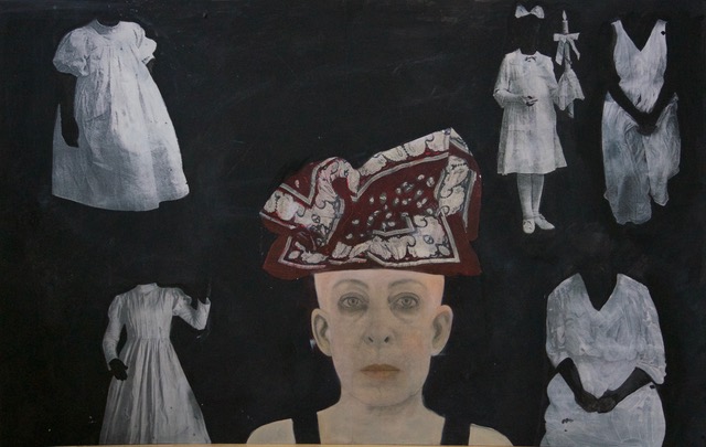 Na jednej z prac mała Krysia pozuje razem z Martą, swoją córką. Są na nim jak równolatki, siostrzane. Martę ubrała nawet w swoją sukienkę z dzieciństwa. Fantazja? Tak, ale też podkreślenie więzi krwi, wspólnej rodzinnej historii. Być może także tęsknota za niepoznanym wizerunkiem matki z dzieciństwa, i innych kobiet tworzących jej żeńską tożsamość. Krysi i Marcie towarzyszy lalka - Ania, znaleziona gdzieś na pchlim targu zabawka, która pojawiała się już we wcześniejszych pracach. Ania - towarzyszka, powierniczka, przyjaciółka, przewodniczka. Głos kobiecej intuicji. Czyż nie dlatego matki często dają swoim córkom lalki?