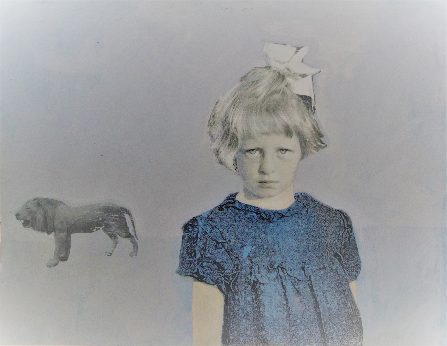 Z jednej z prac patrzy na nas czteroletnia nachmurzona mała buntowniczka, z pewną rezerwą w szaro-niebieskich oczach, ale pewna siebie. Jest odważna jak lew, który przemyka w tle. Zwierz ryczy, ale to ona, Krysia, ustala porządek. To ona układa historię. Ona ma moc kreacji.