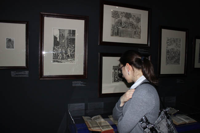 Ekspozycja ma również na celu ukazanie wpływu grafiki i druków ilustrowanych na przedstawienia znajdujące się na majolikach istoratio, Ryciny prezentowane na wystawie należą do kręgu wybitnych twórców grafiki, m.in. Marcantonia Raimondiego, Bernarda Salomona oraz Pierre’a Eskricha. Malarstwo narracyjne przedstawiające historie bogów i bohaterów stało się niezwykle popularne w sztuce Renesansu. Dlatego też artyści najchętniej nawiązywali do cenionej tym czasie Biblii, mitologii, a także „Przemian” Owidiusza. Zarówno na majolikach jak i rycinach, prezentowanych w Muzeum Narodowym, odnajdziemy sceny z tych ksiąg.