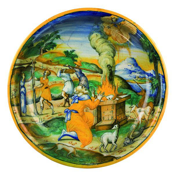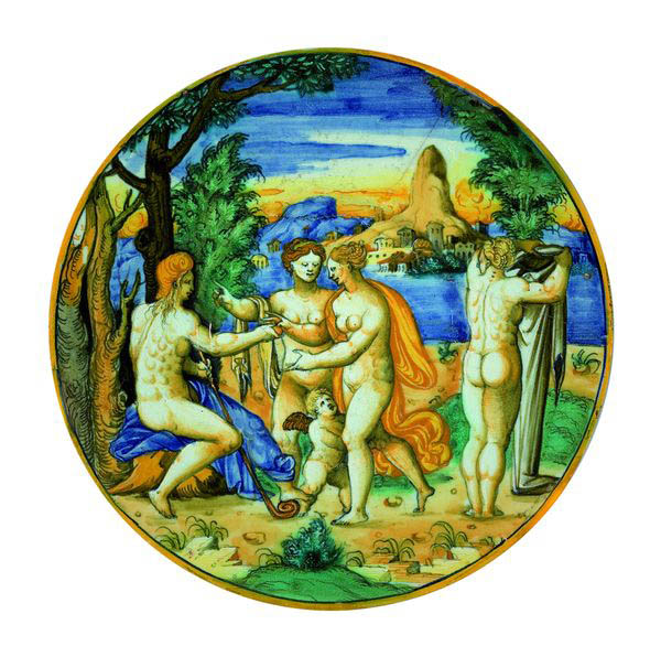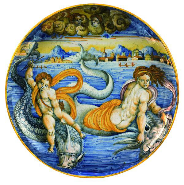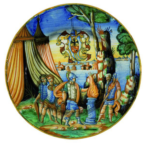 Majolika to włoska odmiana fajansu zdobiona barwnymi szkliwami o lśniącej, błyszczącej powierzchni. Majolika z dekoracją istoriato, wytwarzana od końca średniowiecza, rozwinęła się na przełomie XV/XVI wieku. Ponieważ posiadanie jej w tym czasie wyznaczało status społeczny, cieszyła się dużym powodzeniem wśród arystokratów, szlachciców, książąt, a także dworu papieskiego i władców Europy.