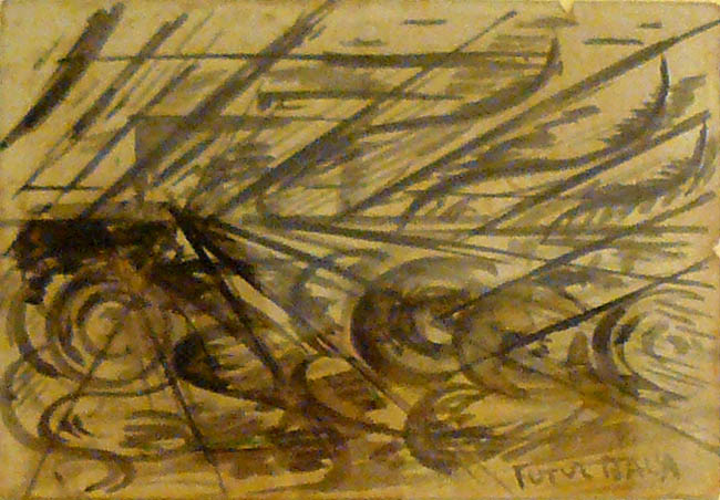 Rzadko się zdarza, by CSW organizowało wystawę historyczną, ale jeśli już ma to ma miejsce, naprawdę jest co oglądać. Kilkadzisiąt prac czołowych przedstawicieli włoskiego futuryzmu wypełniło podziemia Zamku, a także salę na parterze. Dość wymienić nazwiska, takie jak: Fortunato Depero, Enrico Prampoliniego, Giacomo Balli, Benedetty Cappy Marinetti, Umberto Boccioniego, Carlo Carry, Luigiego Russolo czy też Gino Severiniego. Wystawa, czy właściwie dwie wystawy, zatytułowane "Collezionare il futurismo" i "Carte futuriste" pokazują to, o co w futuryźmie chodziło. A zatem kult maszyny, prędkowści, miasta, techniki idące w parze z narodzinami nowej estetyki właściwej dla nowoczesnej epoki przemysłu. Pociągi, samoloty, samochody, obowiązkowo w ruchu, to jedne z głównych tematów obrazów futurystów, obecnych oczywiście w CSW.