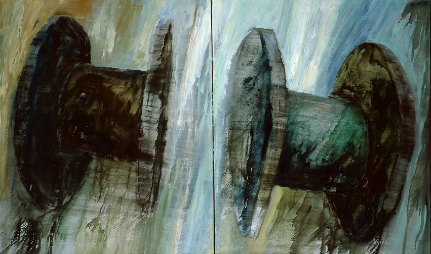 Coś woła, może głośniej, może ciszej, ale przecież zahacza naszą uwagę w prostym komunikacie „popatrz na mnie” wyrażanym dyskretnie, nienachalnie, cierpliwie albo zaczepnie, prowokacyjnie, wyraziście. Takie są prace zgromadzone na wystawie Szepty i Hałasy. Ten lekko sparafrazowany tytuł, wywodzący się od słynnego filmu Ingmara Bergmana, wyznacza zakres temperatury emocji zawartych w ponad trzydziestu dziełach artystów zaproszonych do tej prezentacji przez Profesora Józefa Hałasa. Piętnastu twórców - przedstawicieli różnych pokoleń, związanych w mniejszym lub większym stopniu z różnymi nurtami, pracujących w różnych technikach, operujących odmiennymi stylistykami, uprawiających i sztukę przedstawiającą, i abstrakcję, obserwujących świat po swojemu, a przede wszystkim po swojemu ten świat interpretujących. Tytułowa skala pomieściła wszystkie sposoby wypowiedzi, z których najwięcej sytuuje się gdzieś pomiędzy skrajnymi postaciami dźwięku, wychodząc od ciszy (Andrzej Ziomek), a na manifeście kończąc (Elżbieta Terlikowska). Taką specyficzną klamrą są dla kuratorki wystawy także dwie prezentowane na wystawie prace sprawcy tej artystycznej konfrontacji, Józefa Hałasa. Ascetyczny w swej zawartości akryl Drugi duży z cyklu Piony, skosy (w którym dwie czerwone diagonale, wyraziście „brzmiąc” barwnie, tym bardziej podkreślają błękitną próżnię wypełniającą obraz) zaprasza do refleksji, a nawet do medytacji wymagającej od odbiorcy całkowitego wyciszenia. Natomiast Duże figury rozpychają ramy przedstawienia, konkurują o uwagę widza, jakby zagłuszając nawzajem snute przez siebie opowieści. Podobnie rzecz ma się w przypadku wybieranych przez twórców stylistyk. W cichych rejestrach odnajduję surrealistyczne, melancholijne pejzaże Ziomka (Gennesaret, Głos delikatnej ciszy), transcendentalny symbolizm Michaliny Cieślikowskiej-Kulmatyckiej (Myśli, Z rybą), ale i poezję konkretu zwyczajności u Piotra Tyszkowskiego (Dwie szpulki), czy poszukiwanie prawd uniwersalnych i doskonałości w świecie sztuki obecne w abstrakcyjnych kompozycjach Janusza Merkla (z cyklu Podziały prawie złote). Natężenie „bezgłośnego wydźwięku” malarstwa rośnie, w kolejnej grupie prac zachowując jednak równowagę w użytych środkach. A zatem idealnie zbalansowana geometryczna abstrakcja Aleksandra Dymitrowicza (Pejzaż znaleziony w pamięci), na pozór tylko wyciszone pejzaże Martyny Merkel (z cyklu Reminiscencje) i dekoracyjne ceramiczne Okruchy pamięci Pauliny Ziemby. Marian Waldemar Kuczma zaproponował trzy różne natężenia: od relatywnie stonowanej Szarej blachy po plątaninę wątków formalnych i treściowych w Arezzo. W zdecydowanie „głośniejszej” strefie znaleźli się: Marian Wołczuk ze swoimi zrytmizowanymi, także o zmiennej temperaturze, kompozycjami z cyklu Rekonstrukcje; Kasia Banaś i jej nieokiełznane barwne pejzaże (Daleko stąd na południe, Czarny statek), Jola Nikt ze swoimi neoprymitywistycznymi bajkami dla dorosłych (Kocha nie kocha, Mała żona wielkiego męża), Zdzisław Nitka w konsekwentnie neoekspresjonistycznych pracach malarskich (Ojciec i syn, Otto Müller), wreszcie Kasia Kmita z neo-popartowskimi wycinankami i foliowymi kolażami zanurzonymi w świecie zniewolonym nieustającą konsumpcją i dyktatem mody (Wybór, Zbiór biały, Zbiór czarny), oraz Elżbieta Terlikowska z fotograficznymi kompozycjami kolażowymi portretującymi utraconą niewinność spod znaku Mickey Mouse Is Dead.