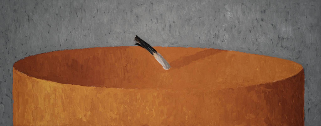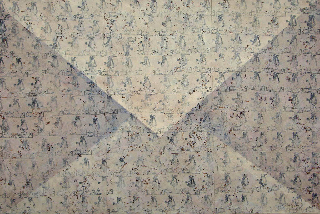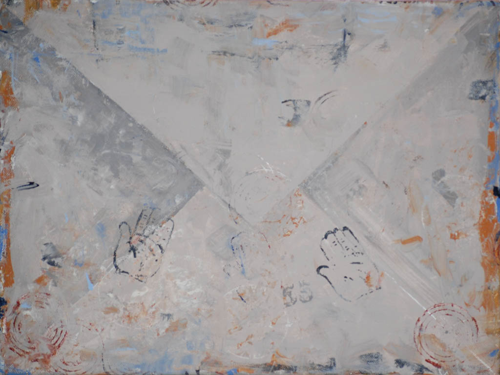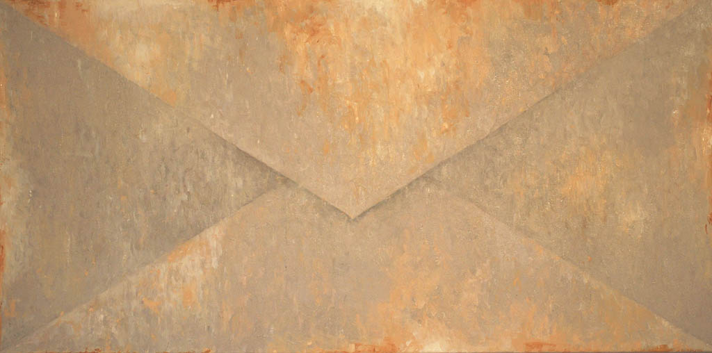 Pierwszy, którego prace zainaugurowały cykl jest Dariusz Mlącki. Spoglądając z daleka na to, co stworzył, nie do końca jesteśmy pewni techniki – rzeźba, relief, czy malarstwo? Zwielokrotnione formy kopert ułożone w większe prostokąty łudząco wydają się być trójwymiarowe. Ich powierzchnia jakby zniszczona, lekko pomięta i pobrudzona – potęguje to wrażenie. Pojedyncza koperta, o dużym formacie, zdobi ścianę. Ale czy mamy do czynienia z prawdziwą, szarą, częściowo poklejoną, już nieco starą kopertą? Czy to kolejne złudzenie? Czy tak jak niełatwo znaleźć tu granicę między jawą a rzeczywistością, tak ciężko dopatrzyć się jej w tzw. realu? Czy życie, którym żyjemy istnieje naprawdę, czy tylko w naszej wyobraźni? Czy świat, który uznajemy za nasz jest tylko światem w naszej głowie, czy światem obiektywnym? Co jest naprawdę, gdzie przebiega linia oddzielające prawdziwe od nieprawdziwego?