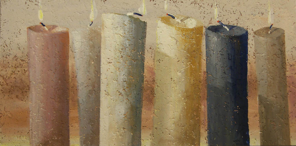 U Mląckiego zobaczymy złożony i zaklejony znaczkiem list z obszarpanymi brzegami kartki, kopcące świece. Koperty tybetańskie, jak nazwał je artysta, inspirowane były niematerialnym klimatem tamtego rejonu, w którym miał okazję przebywać. Koperty tworzy od lat, przyznając, że czasem dla niego samego są jak rzeźby. Powierzchnia jego płócien jest oszczędna w kolorach. Dominuje na nich czerń, biel i siena. Króluje ascetyzm, a treść obrazów wydaje się jasna, prosta, czytelna. Od widza zależy jak bardzo prosta i jak głęboko wnika w to, czego zobaczyć okiem już nie można.