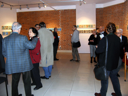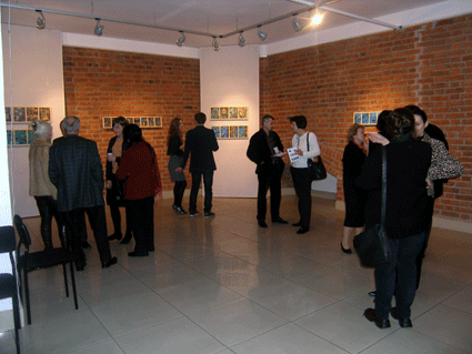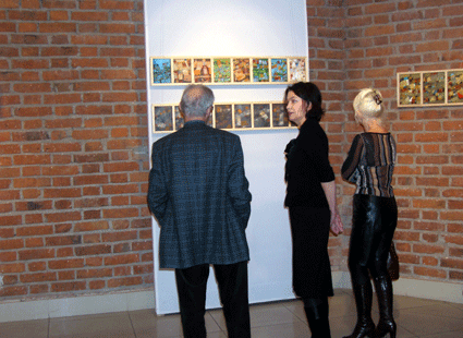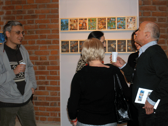 Obrazy Dariusz Skwarcana to prace formacie A4 pogrupowane przez autora i osadzone liniowo w otworach wspólnej podstawy z surowego drewna. Barwna poświata spina je w monochromatyczną jedność. Z bliska każdy z nich odzyskuje malarskie samostanowienie, oddaje jakiś moment eksperymentu, zapisującego się cyklami. Struktura przestrzenna na płaszczyźnie i układ kolorystyczny stanowią pole doświadczenia plastycznego Dariusza Skwarcana.