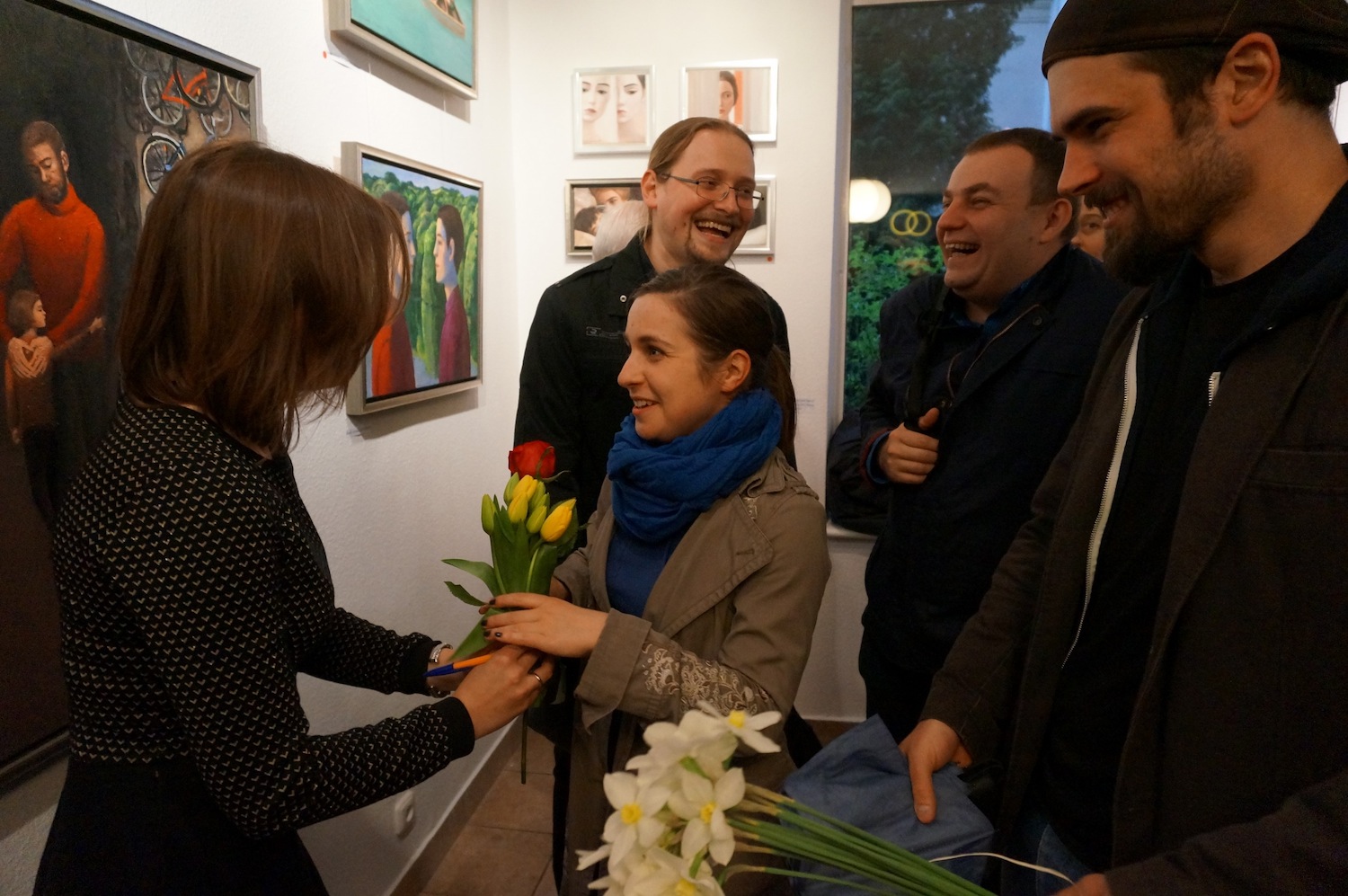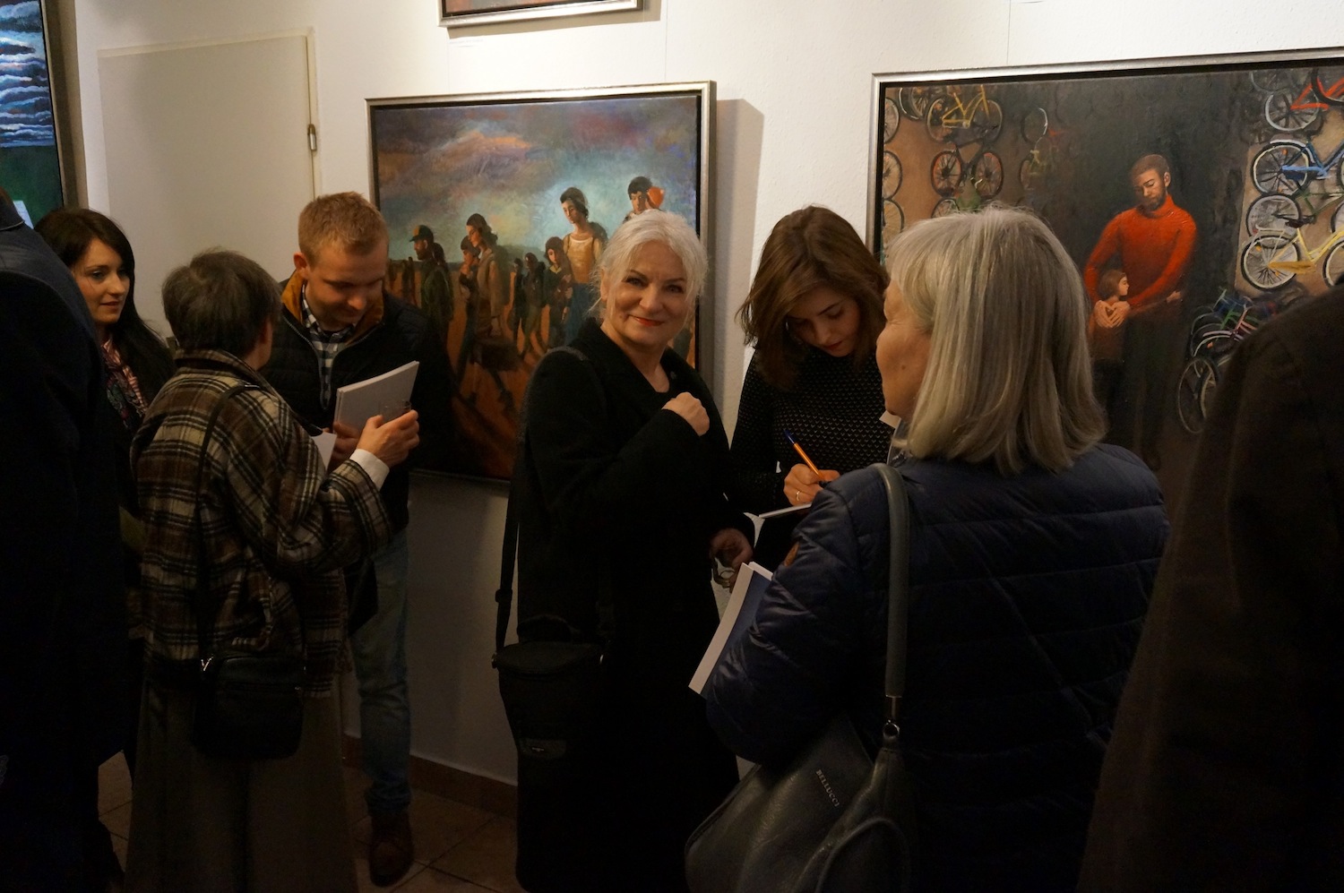 W tej galerii otwarcia wystaw zawsze są tłumne! Tak było i tym razem - część publiczności musiała zostać na zewnątrz. Goście reprezentowali absolutnie wszystkie pokolenia, od emerytowanych pedagogów ASP, poprzez pokolenie rodziców autorki, czyli Anny i Sławomira Karpowiczów po ogromną grupę młodych artystów i sympatyków sztuki, których przywiodło uznanie dla prezentowanej twórczości i sympatia dla tego miejsca. Dużym wyróżnieniem dla artystki i galerii była obecność Wiceprezydenta Miasta Krakowa Andrzeja Kuliga, który z wielkim zainteresowaniem wysłuchał autorskiego komentarza autorki prac. Jej malarstwo zyskało duże uznanie, czego dowodem były sprzedaże i rezerwacje jeszcze przed wernisażem.