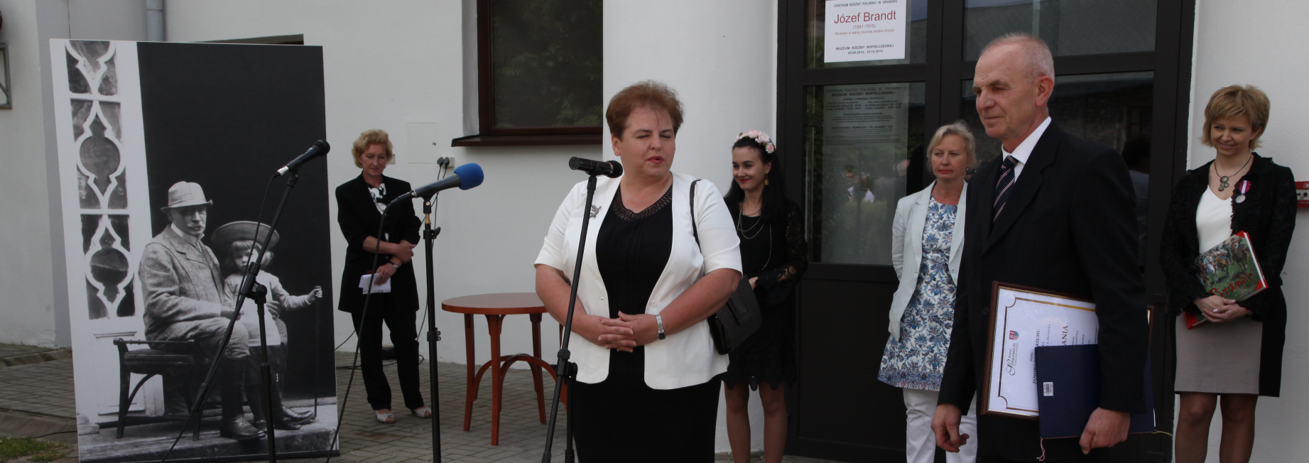 W sobotę 20 czerwca w Centrum Rzeźby Polskiej w Orońsku odbyło się uroczyste otwarcie trzech wystaw związanych z obchodami setnej rocznicy śmierci Józefa Brandta. Rocznica daje szansę na przypomnienie jego twórczości, a także samej postaci artysty, który - mieszkając na stałe w Monachium - szczególnie blisko związany był z Orońskiem. Tu bowiem, w majątku żony malarza - Heleny z Woyciechowskich Pruszakowej - rodzina spędzała lato. Z okazji jubileuszu Centrum Rzeźby Polskiej przygotowało obszerny program, którego głównym punktem jest wystawa Józefa Brandta prezentowana w Muzeum Rzeźby Współczesnej. Towarzyszą jej współczesne pokazy recepcji twórczości naszego patrona: ekspozycja Kłus, stęp, cwał w Galerii Oranżeria oraz projekt polsko-niemiecko-ukraiński Dziedzictwo. Patrząc na Brandta prezentowany w Galerii Kaplica, we wnętrzach pałacu, na tarasie kawiarni Domu Rzeźbiarza i w przestrzeni parku, gdzie odbył się performance niemieckiego artysty Christopha Both-Asmusa Tree Walker. A Moment in Time przed wejściem do pałacu Józefa Brandta.