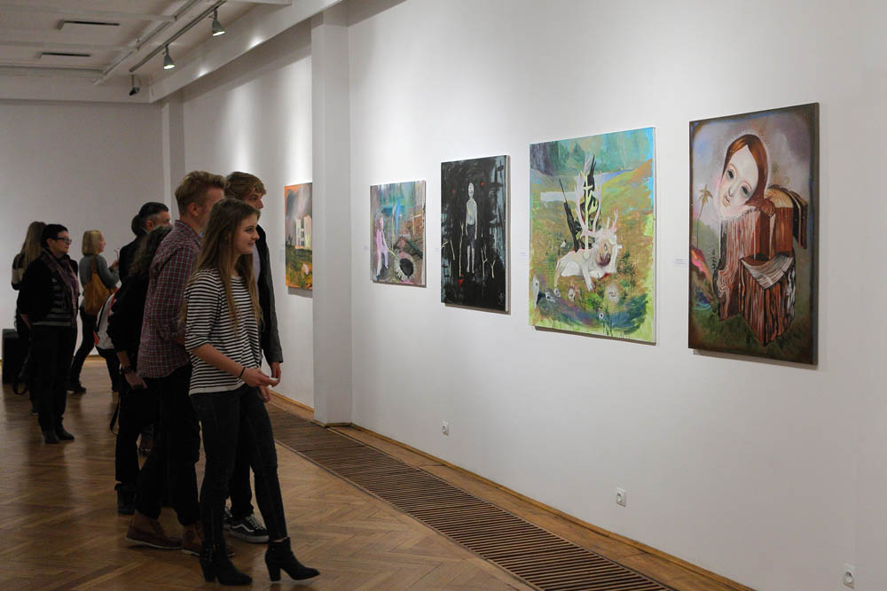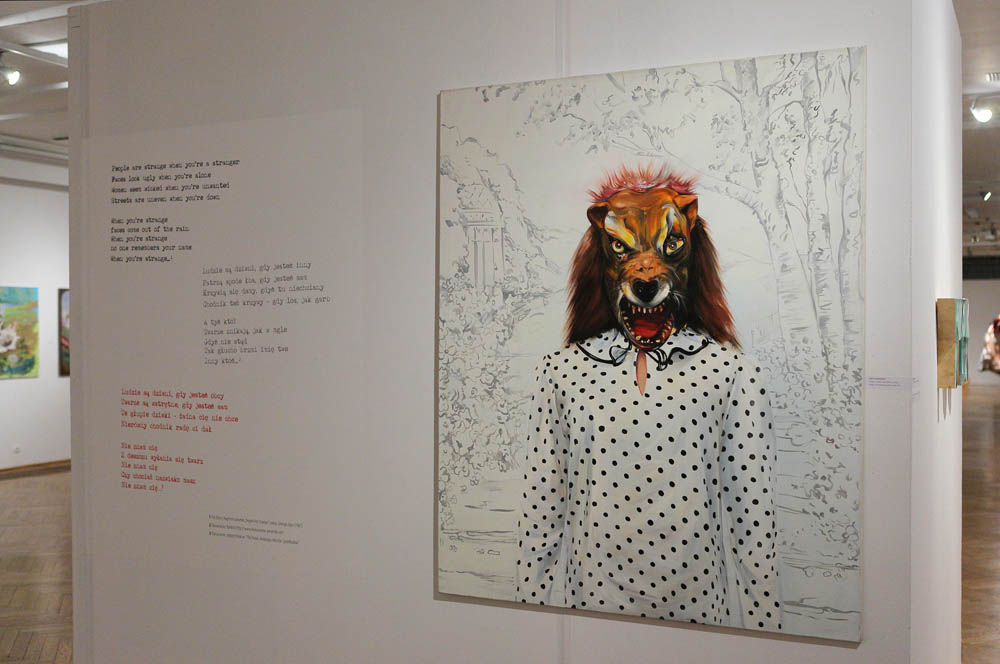 Wszystkie prace na wystawie People are strange można odczytywać jako artystyczne sposoby obrazowania rzeczywistości, ale mogą one również przysłużyć się widzowi jako narzędzie introspekcji. Logotypem wystawy jest twarz wydobyta z rozlanych czarnych plam, przypominających kleksy z testów Hermanna Rorschacha, szwajcarskiego psychoanalityka, który w 1921 roku wynalazł na potrzeby diagnozy psychologicznej metodę badań dopuszczającą do głosu podświadomość. Uznanie, że istnieje w nas drugi, ukryty poziom doświadczenia idealnie wpasowało się w założenia twórcze dadaistów i surrealistów, którzy eksplorowali przestrzeń nieświadomości i snu, wykorzystywali nowo pozyskane techniki psychiatrii oraz psychologi, aby intensyfikować własne zdolności wizjonerskie. Poznaj siebie (gnothi seauton) głosił napis nad portykiem świątyni Apollina w Delfach. Zarówno widzowie, jak i artyści, którzy współtworzą tę wystawę mogą połączyć się na płaszczyźnie interakcji i zrozumienia - artysta odsłania i użycza wrażliwości, a widz, obserwując swoją reakcję na dzieła, zyskuje wgląd we własną osobowość. Gra skojarzeń, pozornie abstrakcyjne kształty, wykorzystanie technik kolażu, montażu, przekształcania obiektów, jak u dadaistów i surrealistów, to elementy olsztyńskiej wystawy, które pozwalają widzowi testować tory prywatnych asocjacji, badać obszar swojego postrzegania i źródła przyjemności, przywoływać obrazy z głębokich pokładów pamięci. Wszystko to może posłużyć nie tylko za źródło artystycznej inspiracji, ale pozwoli uważnemu widzowi poszerzyć swoje mentalne horyzonty i odczuć, być może zapomnianą, moc wyobraźni - jak napisała kuratorka wystawy Ewelina Bobińska.