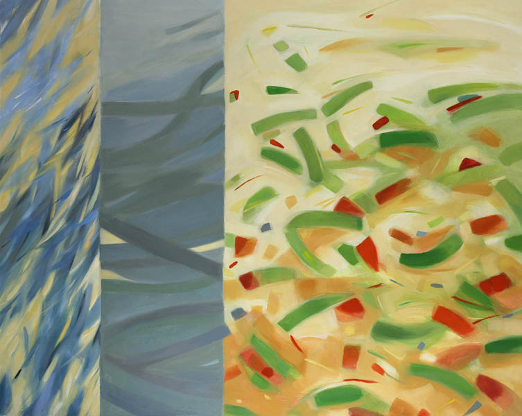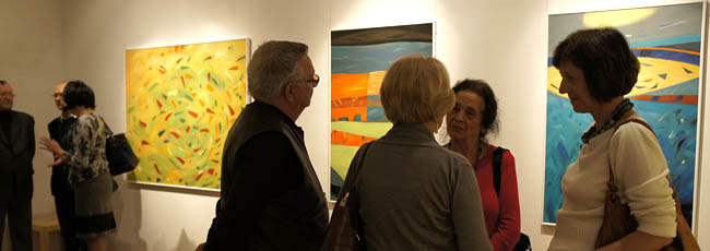 Ten fragment analizy kilkunastu prac pokazywanych rok temu w Warszawie można z powodzeniem odnosić do obecnej wystawy Elizy Nadulskiej w galerii Abakus podkreślając aspekt radosnego obcowania z jej sztuką – porywającą kolorystykę i liryzm widoków przeniesionych z natury ale odrywających się lekko od ziemi w stronę abstrakcji. Zmieniają się czasy i pory roku, życie się toczy po utartych koleinach kosmosu i nie trzeba widzieć w przemijaniu dramatu ludzkiej egzystencji, jeśli się ją wpisze w obraz całej przyrody. Wtedy dostrzeżony konkret – spadający na wodę liść, uderzanie o brzeg morskiej fali, świetlne ciepło plaży czy architektoniczny ślad aktywności kulturalnej człowieka mogą sprowadzać na patrzącego łaknienie udziału w estetycznej harmonii świata poza bólem i złem. Pod wpływem tych obrazów każdy może doznać choćby chwilowej metanoi.