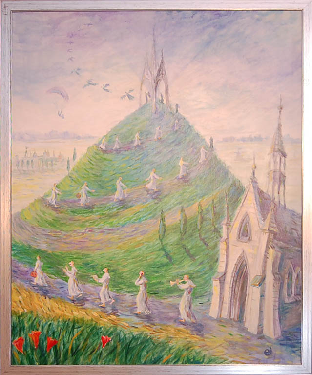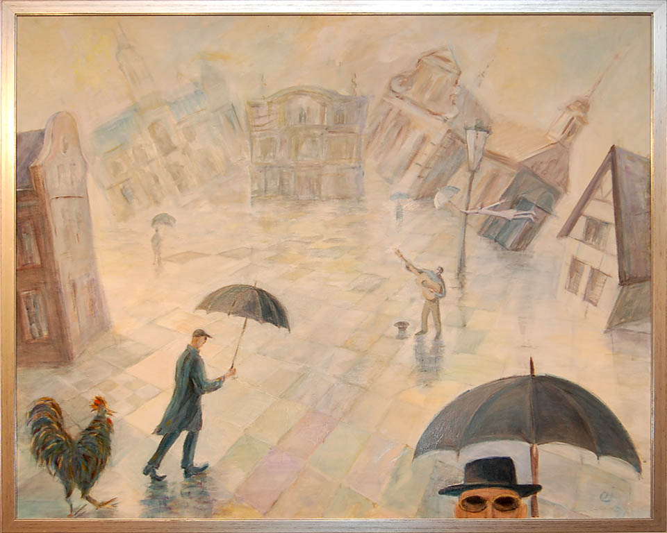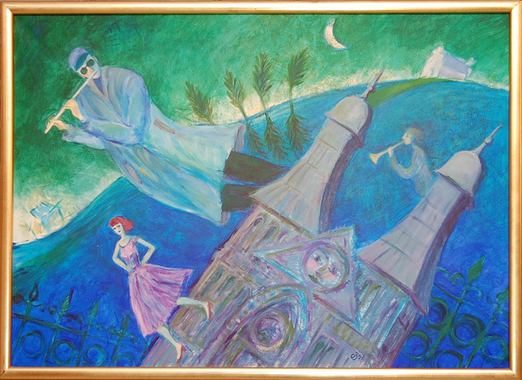 Spontaniczność, jasna paleta barw, dynamiczna kreska, upodobanie do szczegółu, niekonwencjonalne ujęcia perspektywy i zaprzeczające grawitacji historie to podstawowe elementy, którymi Elwira Iwaszczyszyn buduje swój nieokiełznany świat. Autorka jest projektantką wnętrz i ogrodów, to nie pozostaje bez znaczenia dla jej malarstwa. Wyczucie przestrzeni i monumentalizmu architektury, w szczególności sakralnej, umiejętność nieco teatralnego, kulisowego budowania kompozycji oraz dbałość o "dekoracje", wywodzi się niewątpliwie z uprawianego zawodu.