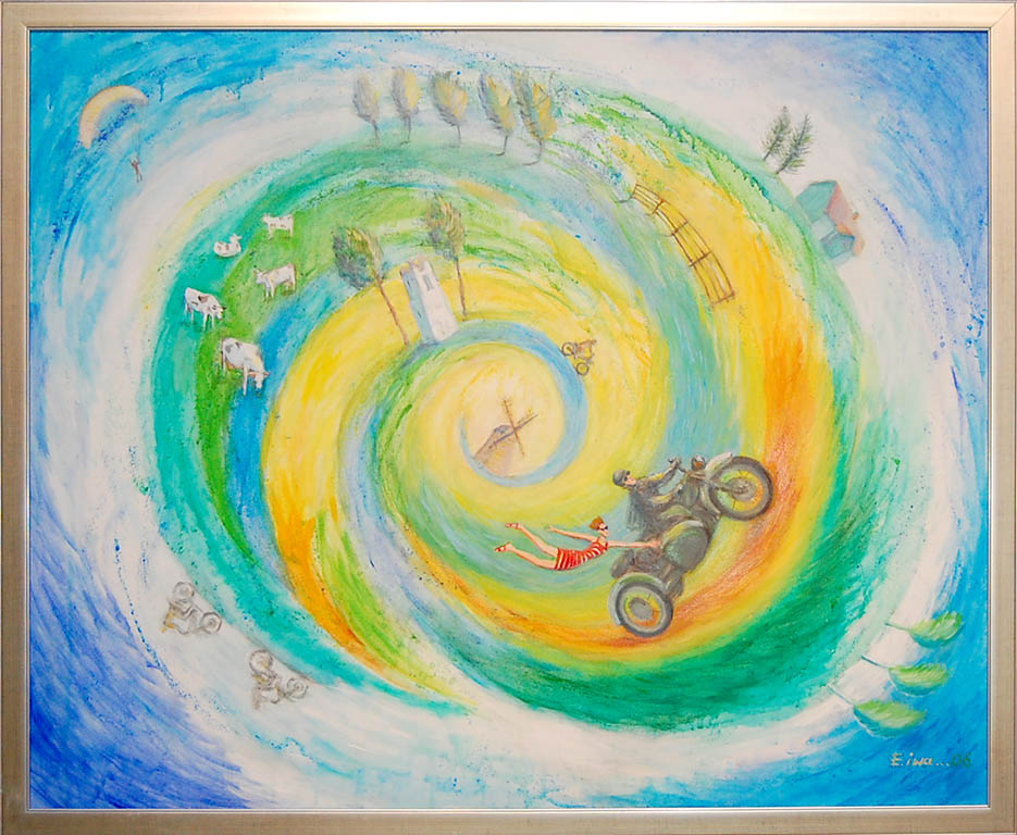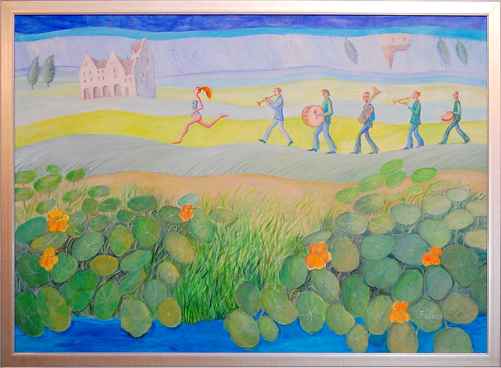 Elwira Iwaszczyszyn zajmuje się też rysunkiem, projektowaniem graficznym i malarstwem ściennym. Stąd zapewne upodobanie do wyrazistego konturu i realistycznych form. To jednak formalna strona tego malarstwa. Od strony narracyjnej jest to jednak surrealny świat, będący radością, wytchnieniem i relaksem. To ucieczka przed zgiełkiem pędzącej cywilizacji, azyl, w którym możemy schronić się przed nadmiarem oczekiwań ze strony otaczającego nas świata. A najważniejsze, że patrząc na prace Iwaszczyszyn ma się pewność, że tworząc je artystka doskonale się bawi, a to zaraźliwe.