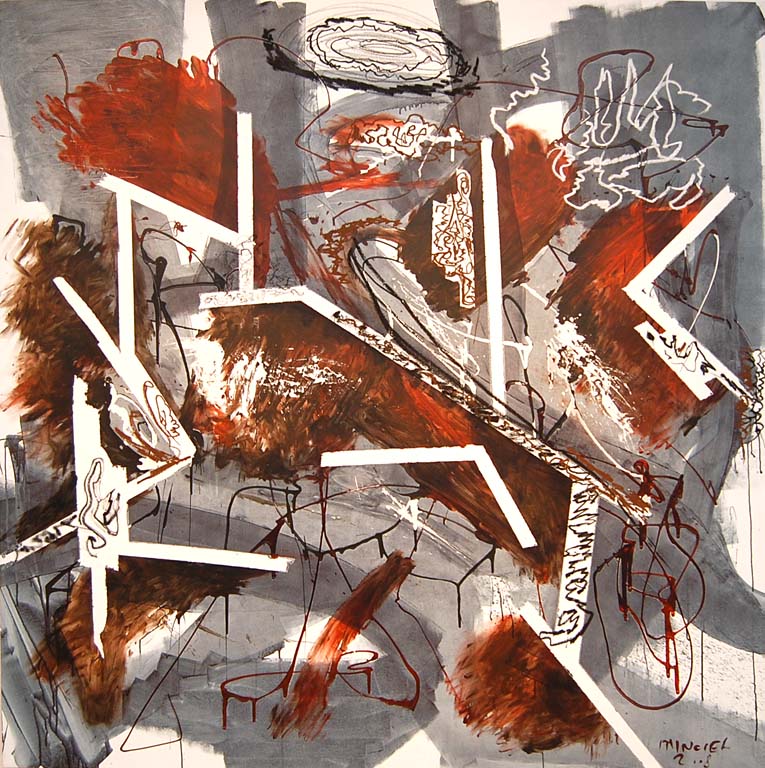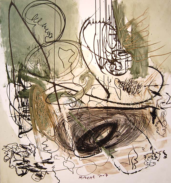 Minciel, w swojej twórczości, wierny jest dwuwymiarowej przestrzeni obrazu malarskiego, mimo to wykorzystuje obce obiekty, które przytwierdza do płótna. Obrazy artysty są abstrakcyjne w swoim założeniu, jednakże posługuje się symbolami figuralnymi, które mają swoje symboliczne znaczenie, np. runy. Można zauważyć także postaci wkomponowane w abstrakcje.