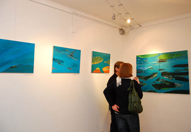 Wernisaż w Składnicy, tym razem nieco rozciągnięty w czasie, upływał w atmosferze wyraźnie inspirowanej płótnami artystki: spokojnie, nieśpiesznie i pogodnie. To kolejne miłe spotkanie w tej niewielkiej galerii.