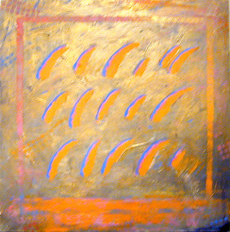 To część nowych kompozycji. W innych, też nacechowanych dynamiką, autorka ustawia w opozycji tło i fakturę. Równiutko założona muzealnym złotem powierzchnia obrazu rozbita zostaje wyciśniętymi prosto z tubki makaronami farby zasychającej w określonym rytmie, nasuwającym skojarzenia z zapisem pisma i matematycznymi wyliczeniami. Konotacje naukowe są tu bardzo na miejscu, gdyż inspiracją dla autorki do namalowania tych obrazów stały się osiągnięcia współczesnej fizyki, badające budowę materii. Świat, według tych teorii zbudowany jest z rozmaitych cząsteczek zawieszonych w próżni. Nie jesteśmy w stanie zobaczyć, jak one wyglądają, lecz z obliczeń naukowców niezbicie wynika, że istnieją. Są tak małe, że prawie nie mają masy. Jak wyglądałyby, gdybyśmy mogli je powiększyć i obejrzeć? Odpowiedź Kilianowicz-Bareckiej jest oczywiście tylko jedną z możliwych, ale interesującą propozycją obrazowania niepostrzegalnego ludzkim okiem świata.