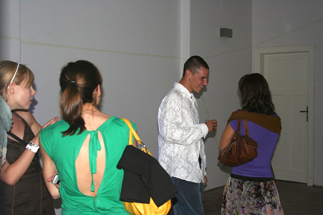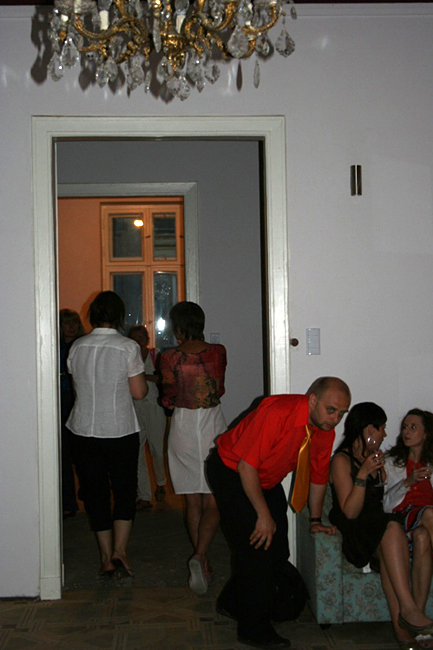 Tymczasem inaugurująca ekspozycja to zbiorowy pokaz dokonań 4 artystów. Prace każdego z nich zajmują osobne pokoje. W tym, z widokiem na dachy kamienic Śródmieścia jest to instalacja Agaty Biskup. Na ścianie namalowana jest boazeria, na niej zawieszone zdjęcia i obrazy przedstawiające przedmioty z dawnego mieszkania artystki. To nostalgiczna opowieść o miejscu niezbyt może artystycznym i dizajnerskim, jednak wyczuwa się tęsknotę do tej zwyczajności.