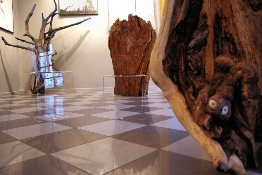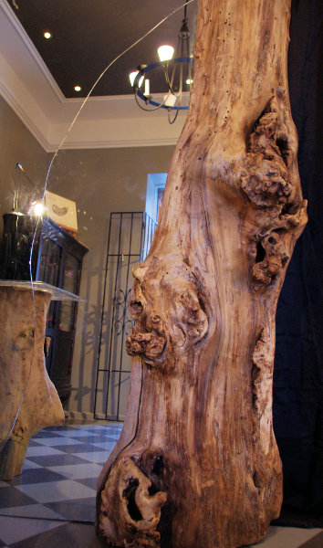 Na wystawie Inez – Krupińskiej najbardziej zaskakują meble. Łączą – dzięki niesamowitej wizji artystki - dwa światy: nowoczesnego dizajnu, który reprezentuje pleksi i świat natury, rudymentarny, ale wieloznaczny, basniowy, mityczny, który zakodowany jest w pniach drzew, surowych, jakby nietkniętych ludzką ręką...
