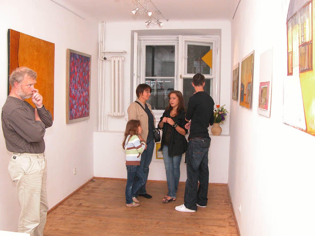 Autorka równoległe zajmuje się grafiką i malarstwem, a choć na wystawie w Składnicy prezentowała tylko to ostatnie, to widać w nim było wyraźnie pokrewieństwo z drugą z uprawianych przez Stachurę technik. Poprzez specyficzną graficyzację w traktowaniu przestrzeni, budowaniu akcentów poprzez konturowanie brył i oderwaniu koloru od przedmiotu w sposób przypominający akwarelę czy technikę lawowania Stachura stwarza umowność przestrzeni i malowanych motywów, odrywa je od ziemi i nadaje im specyficzna lekkość.