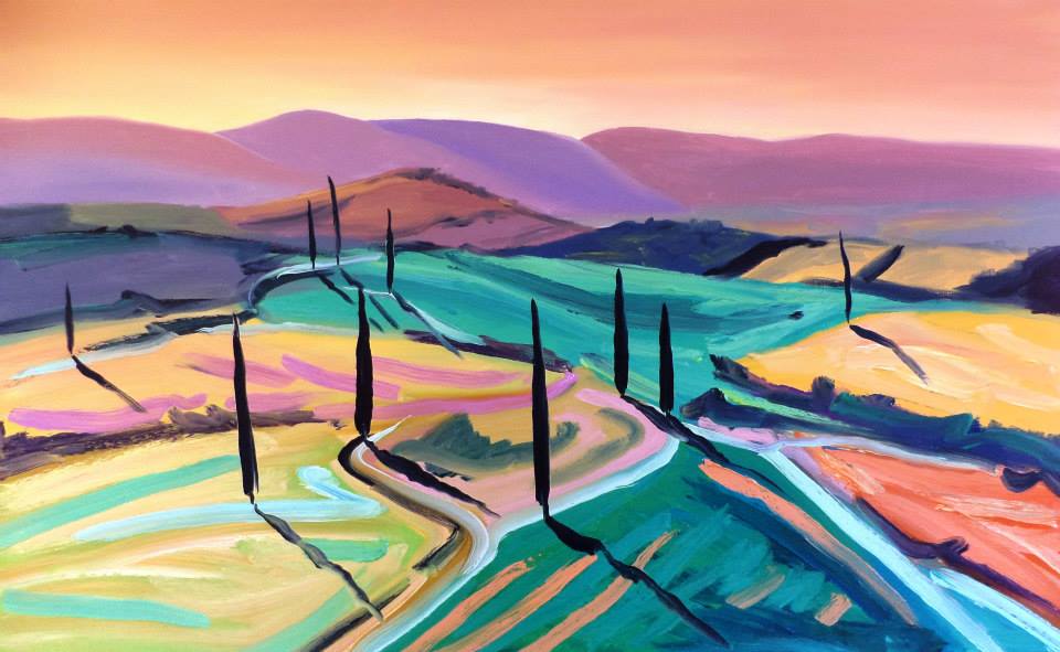 Natomiast kolor jest absolutną eksplozją uczuć. Obrazy są niezwykle ekspresyjne kolorystycznie. Mają nasycone i często kontrastujące barwy. Głębokie fiolety przenikają się z błękitami, czernią i zielenią zaczerpniętą wprost od mięty. Jego obrazy to ciągłe poszukiwanie ruchu, konfrontacja dynamicznych przestrzeni ze statyką płaszczyzn i odkrywanie kinetyki koloru. Toskania - jeden z najpiękniejszych regionów na świecie - swą urodą i atmosferą gorącego śródziemnomorskiego południa zawładnęła artystą.