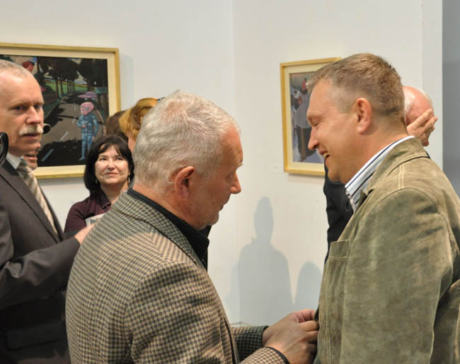 Częstochowski artysta zaprezentował dwadzieścia nowych prac malarskich z lat 2009 – 2010. Prac perfekcyjnie namalowanych i jak zwykle w jego prześmiewczym stylu.
