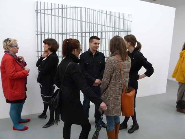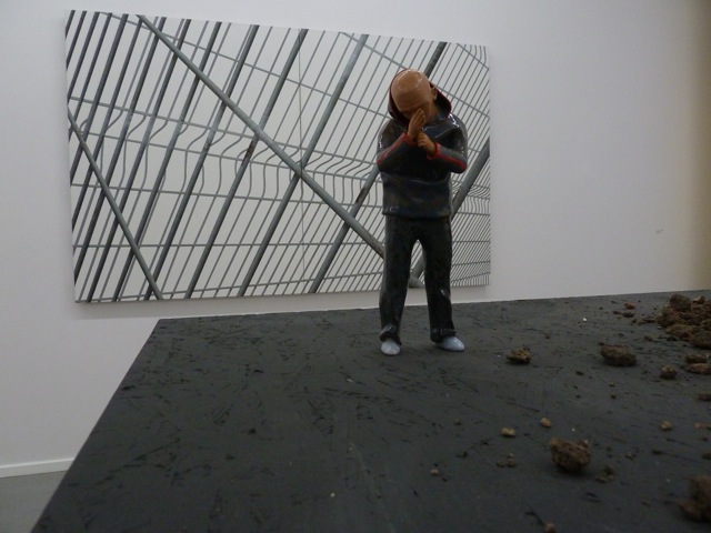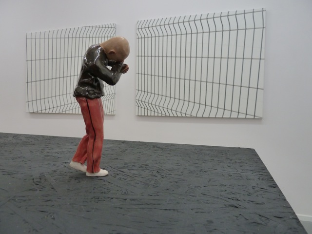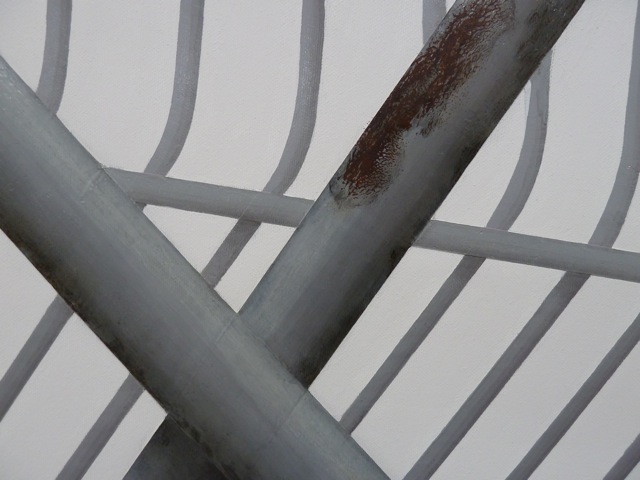 Jakub Ciężki jest ubiegłorocznym laureatem Bielskiej Jesieni. Jego realistyczny, ale mający cechy abstrakcji geometrycznej, obraz Rusztowanie zdobył główną nagrodę. Rusztowanie stanowi rozwinięcie wcześniejszej koncepcji, którą artysta zrealizował w serii monochromatycznych płócien przedstawiających przemysłowe ogrodzenia. Siatka prętów wypreparowana z rzeczywistości i rzucona na białe tło zdaje się być odrealnioną kompozycją geometryczną. Niemniej metalowe parkany identyfikujemy bezbłędnie. Zespół tych obrazów otacza mikro świat Tomasza Kulki i staje się oczywistą alegorią stadionowych barier. Jak widać wystawa jest poświęcona piłce nożnej. Z tym, że tylko jej tam właśnie nie ma.