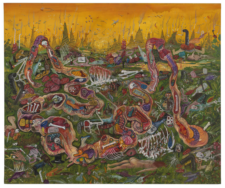 Obrazy Ziółkowskiego formalnie przynoszą na myśl malarstwo Otto Dixa, Bronisława Linke, Giorgia de Chirico czy z dawniejszych odniesień, Hieronima Boscha. Pełne są skłębionych, rozkładających się ciał, robactwa, wybujałej roślinności, czy dziwnych, nienaturalnych stworzeń. Na wystawie znalazła się m.in. ważna, bo osobista dla artysty, praca Oesophagus,o której w rozmowie z Banasiakiem mówi: „Oesophagus (czyli przełyk), to taki przewodnik po wystawie. Tam zebrane w jednym miejscu są wszystkie elementy, które pojawiały się w moich obrazach. Płótno opowiada o filtrowaniu rzeczywistości. Człowiek to wielki przełyk, który pochłania książki, ludzi, filmy, emocje, miłości, alkohol, papierosy, doświadczenia metafizyczne… To wszystko zbiera w jednym organizmie i jest trawione, trawione. Niektóre rzeczy pozostają gdzieś w żołądku, a inne są wypluwane, wydalane. To bardzo narracyjna, ale także osobista praca.”