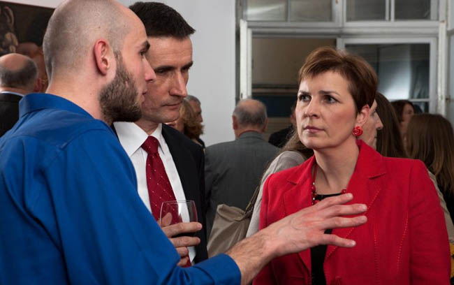 "Już sam tytuł wystawy narzuca nam niespieszny ogląd i małą ekscytującą promenadę towarzyszącą dziełu Jana Lebensteina. 30 prac tworzących ten odkrywczy zbiór, to kolekcja sięgająca końca lat 50 –tych i początku lat 60 –tych, lat kiedy Figury osiowe zafascynowały najbardziej wyrafinowany smak ówczesnego Nowego Jorku. Wystarczy przypomnieć tylko wielkiego kolekcjonera tych lat Albrechta Grokhosta, który kupował wtedy równolegle Marca Rothko, Egona Schiele i ... Jana Lebensteina, tworząc kolekcję wyprzedzającą fascynacje Europą Środkową lat 80 – tych. Stawiający wtedy swoje pierwsze kroki w Nowym Jorku Jerzy Kosiński był prawdziwie zafascynowany postacią i szyframi Lebensteina. Tak jakby zobaczył w nich swojego nie napisanego jeszcze The Painted Bird. Wystawa Promenade to jakby rewelacyjna – odsłaniająca nam jednym szarpnięciem zasłony - esencja oeuvre Jana Lebensteina. Od Figur osiowych w ich kilku wcieleniach: geometrycznej, informel, po widoczną jak znak wodny indywidualną figurację późnych Figur z początku lat 60 – tych, przez rysunki i gwasze – pokazywane chyba po raz pierwszy – pochodzące z sekretnych carnets intimes malarza prowadzonych równolegle do Figur."