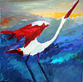 Ptaki malowane są na kolorowych tłach, czysta i powściągliwa linia ich sylwetek emanuje przyrodzoną im elegancją i godnością.