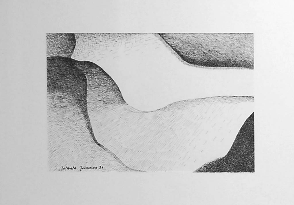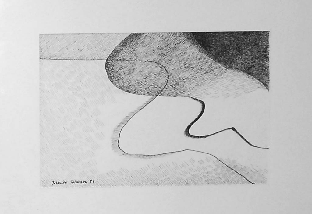 Jolanta Johnsson odczuwa naturę w sposób bardzo zmysłowy i takim sposobem widzenia stara się podzielić z odbiorcą. Jej malarstwo bogate jest w fakturę, budującą dodatkowo kompozycję przedstawienia i powodującą, że obrazy artystki oparte są na silnej konstrukcji. Konstrukcję tę widać także, mimo użycia zupełnie innego medium, w rysunkach, będących z jednej strony pierwszym, spontanicznym zapisem wrażeń, z drugiej jednak, dowodem na sposób malarskiego myślenia i kształtowania kompozycji. To one wskazują na równowagę inspiracji w twórczości Johnsson, równowagę pomiędzy czerpaniem z natury i kultury wizualnej - w tym wypadku wielkich mistrzów abstrakcji.