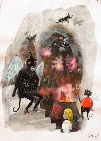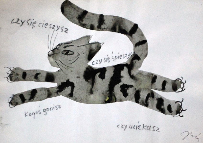 Prace Józefa Wilkonia prezentowane obecnie w salach ekspozycyjnych Galerii SD to zbiór ilustracji opatrzonych wspólnym tytułem Zilustrował Józef Wilkoń, będących interpretacją literatury dla dzieci. Autorami utworów literackich stanowiących inspirację plastycznych przedstawień są m.in. Agnieszka Taborska - pisarka, historyczka sztuki i romanistka, której bajki dla dorosłych i dzieci wydano w Polsce, Niemczech, Japonii i Korei; Mischa Damjan – jugosłowiański pisarz, autor wielu bajek dla dzieci; Ulf Stark – szwedzki pisarz, którego książki dla dzieci i młodzieży znane są także w Polsce. Na wystawie, co należy podkreślić, prezentowane są również ilustracje książek autorstwa Józefa Wilkonia (np. Kici kici miau), a także jego syna Piotra pt. Rosalind das Katzenkind oraz Gold fur Konig Otakar.