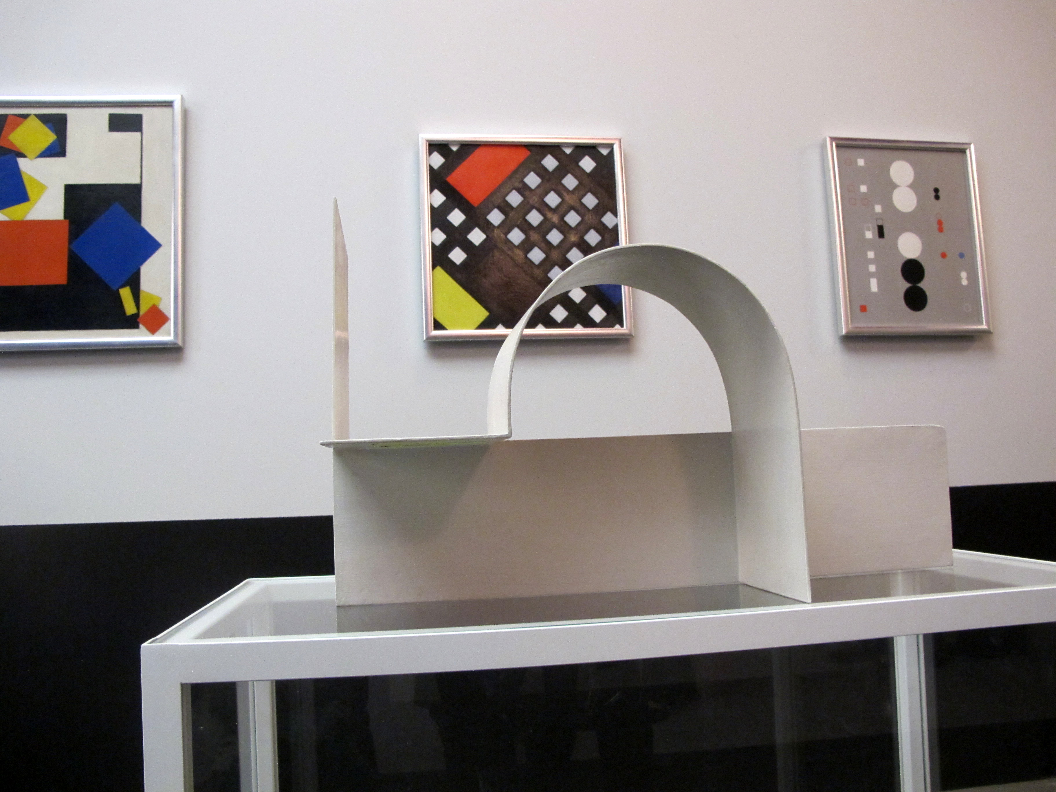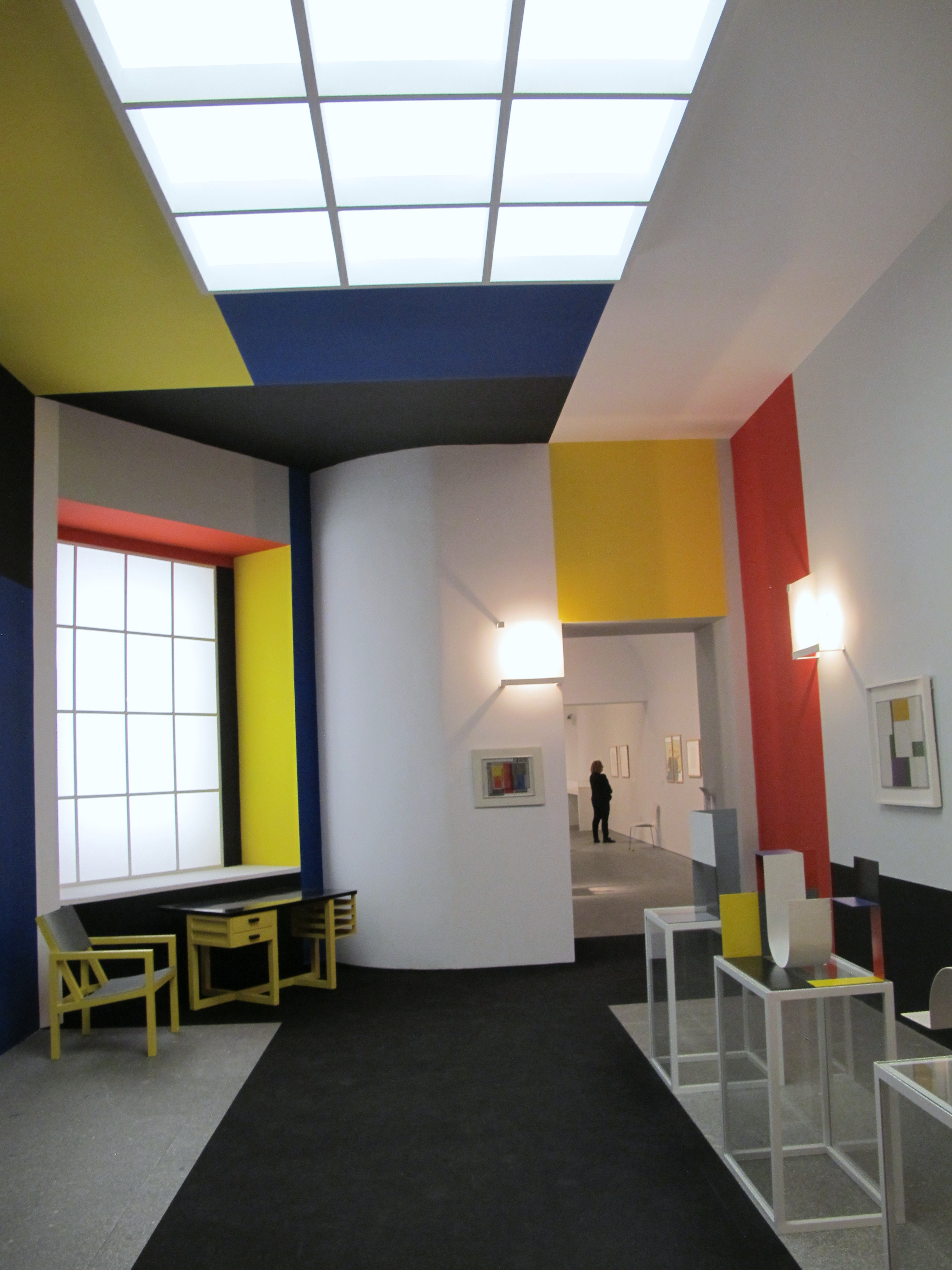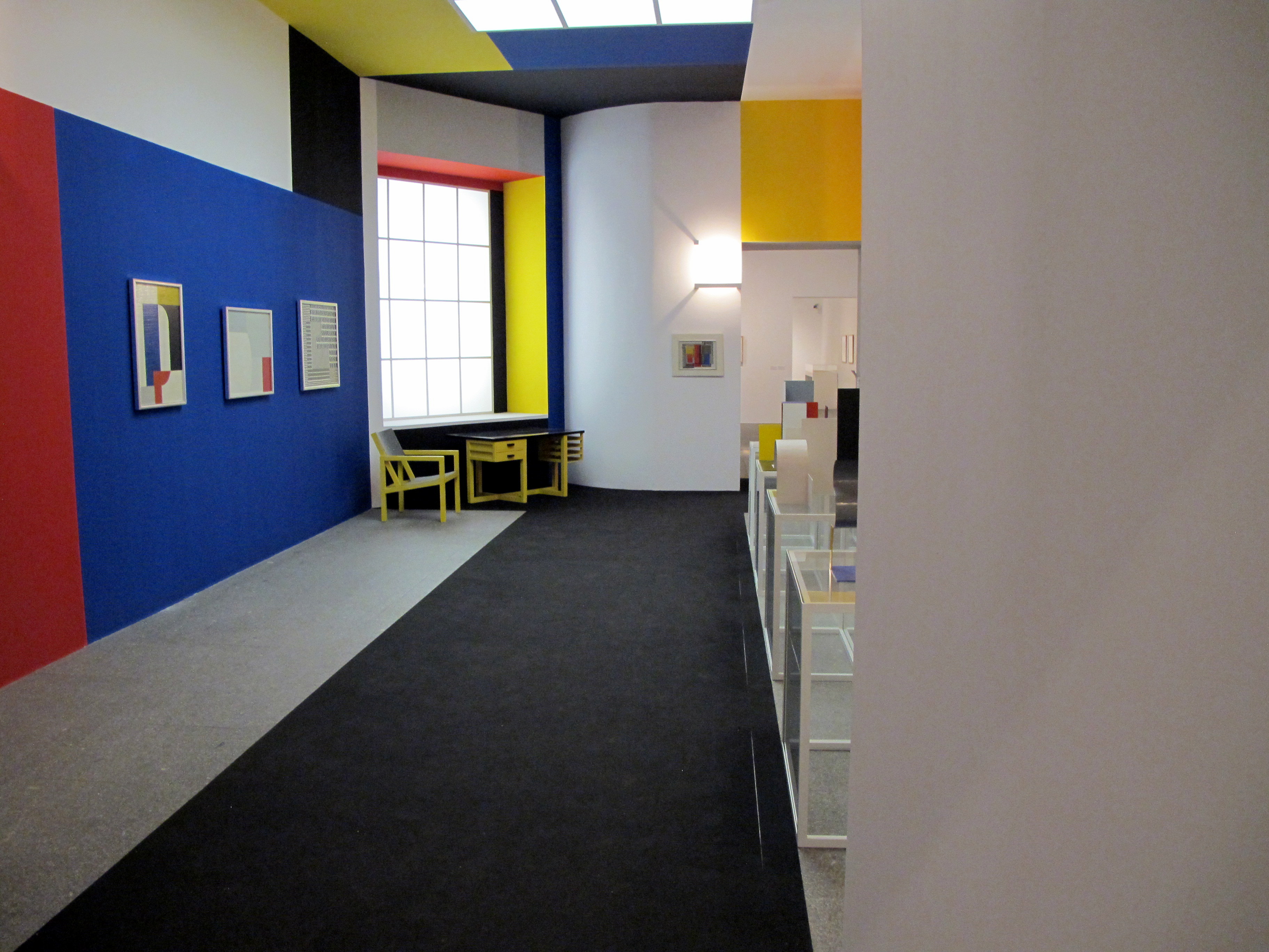 w 1947 roku. Z informacji zamieszczonej w folderze do wystawy zwiedzający dowiadują się, że (...) projekt ten obrazuje, z jednej strony, estetykę neoplastycyzmu, z drugiej, Kompozycje przestrzenne Kobro. Kolorowe płaszczyzny prostych form geometrycznych ścian, sufitu i podłogi rozmieszczonych w ścisłym matematycznym porządku, zgodnie z zamierzeniem artysty spełniają zadanie kierowania ruchem zwiedzającego i jego spojrzenia na wystawione dzieła.