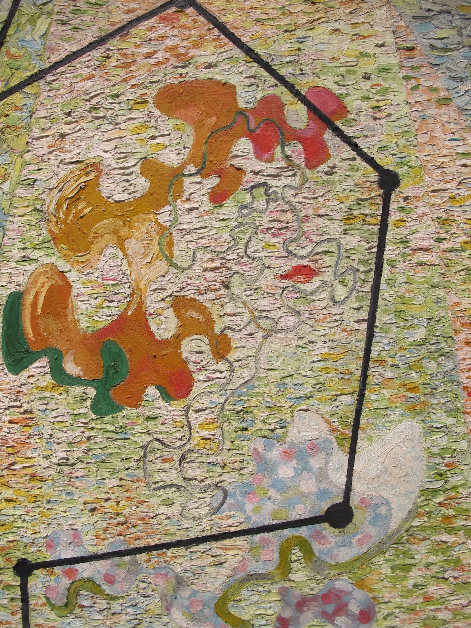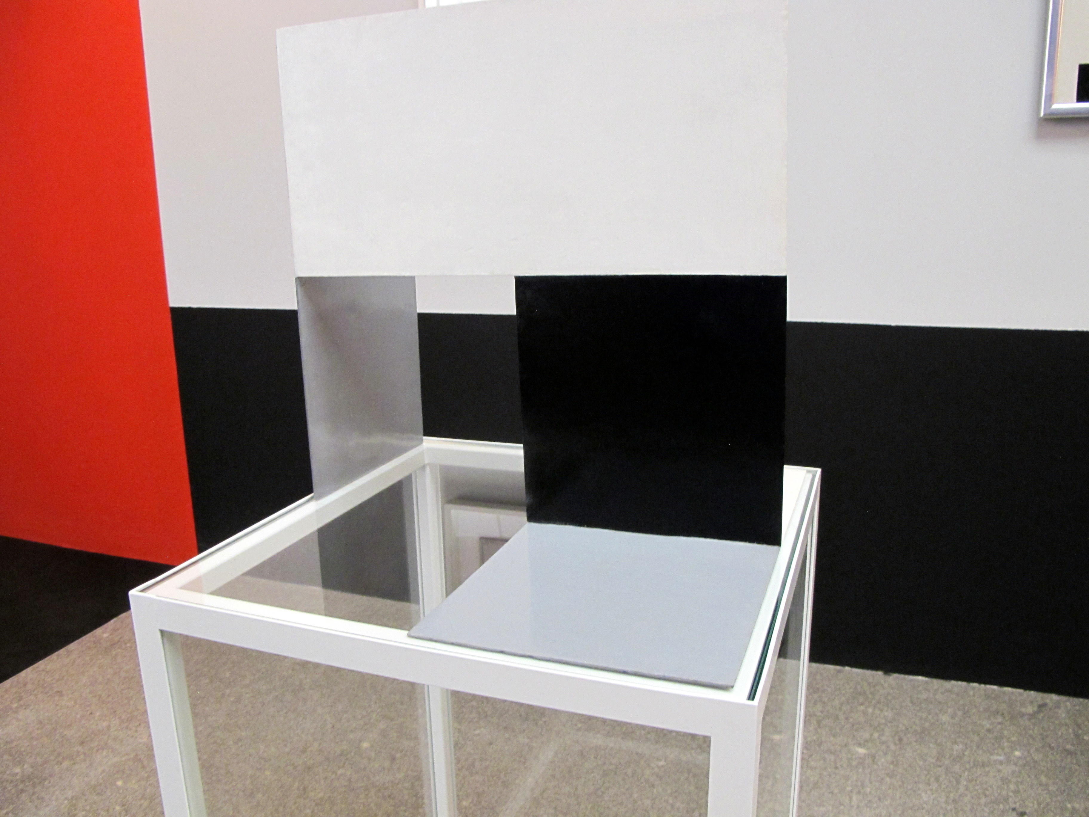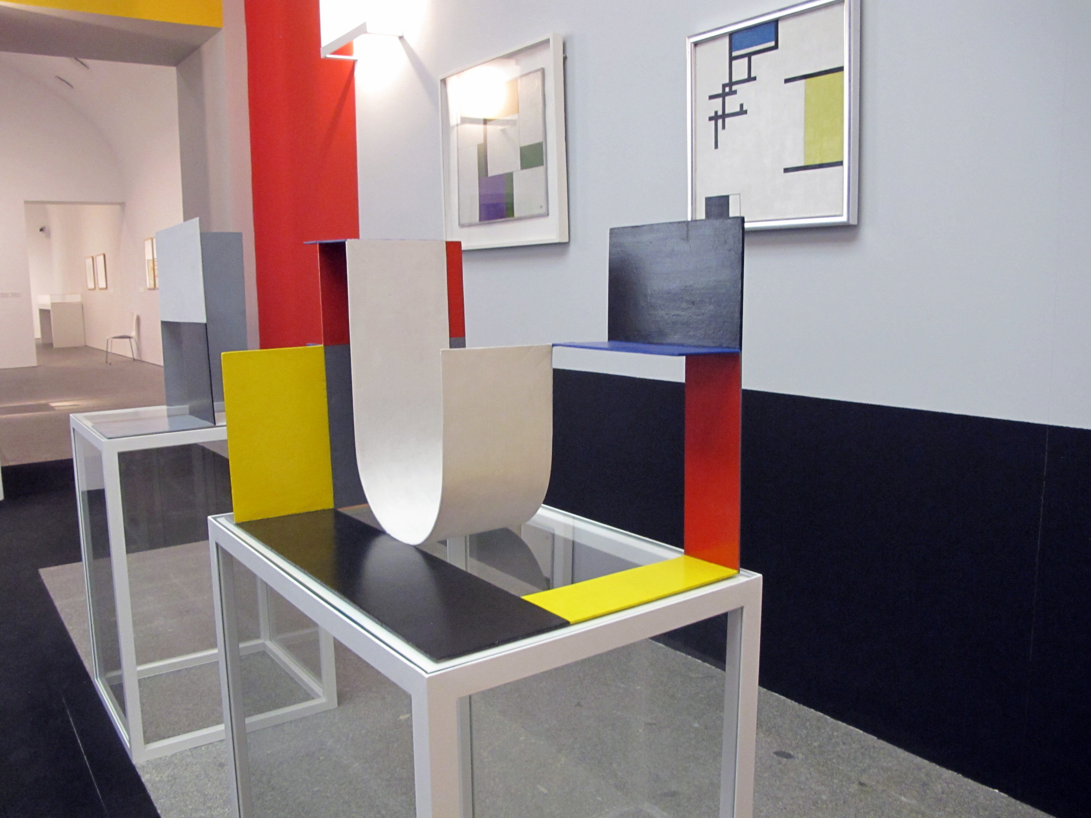 w 1947 roku. Z informacji zamieszczonej w folderze do wystawy zwiedzający dowiadują się, że (...) projekt ten obrazuje, z jednej strony, estetykę neoplastycyzmu, z drugiej, Kompozycje przestrzenne Kobro. Kolorowe płaszczyzny prostych form geometrycznych ścian, sufitu i podłogi rozmieszczonych w ścisłym matematycznym porządku, zgodnie z zamierzeniem artysty spełniają zadanie kierowania ruchem zwiedzającego i jego spojrzenia na wystawione dzieła.