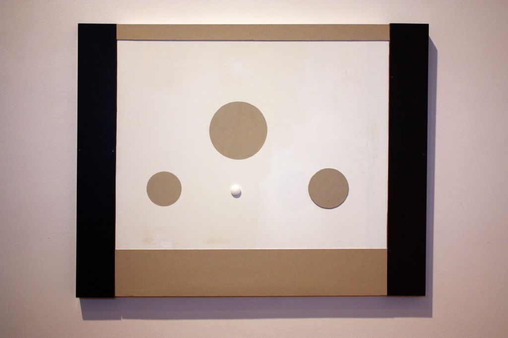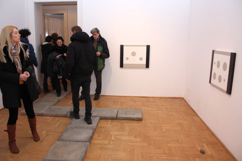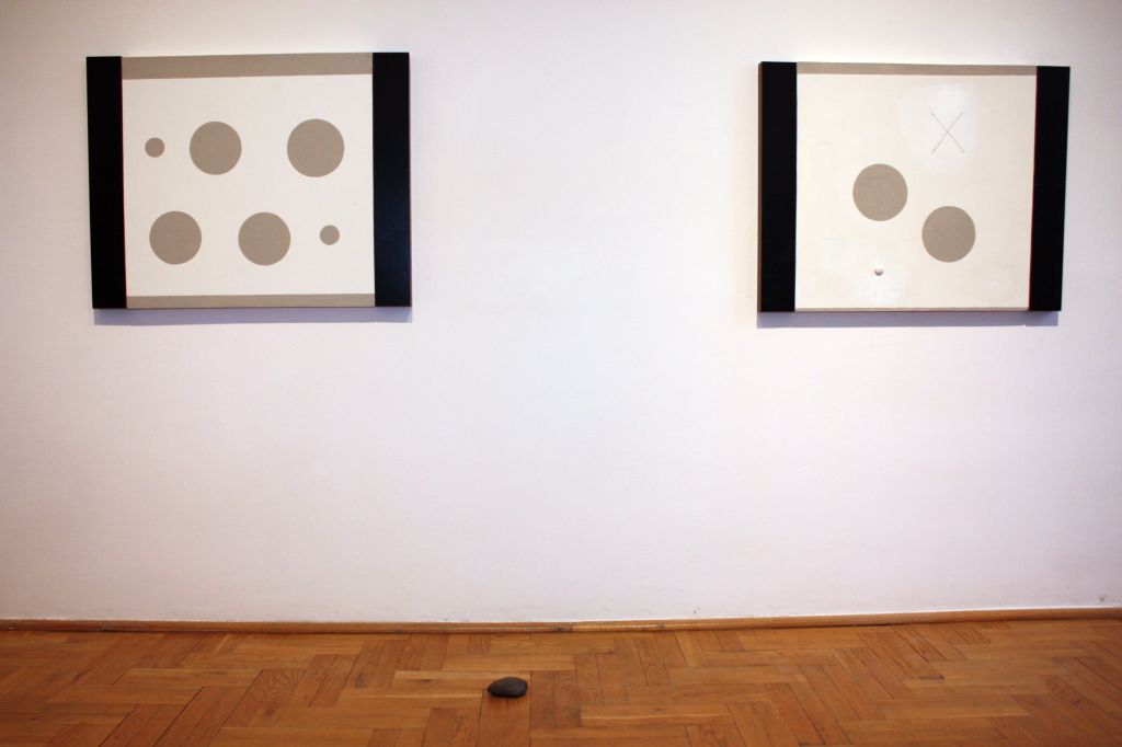 Na wystawę po pomieszczeniach, w których wiszą prace artysty, wchodzi się po płytach chodnikowych. To część przekazu w postaci instalacji. Pod niektórymi pracami, na podłodze, leżą kamyki i kamienie. To są elementy, które spajają w całość ekspozycję. Kamienie milczą i trwają. To podróż po prawdziwym ogrodzie zen. To ogród zen Kōji z jego pracami.