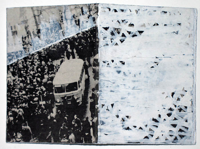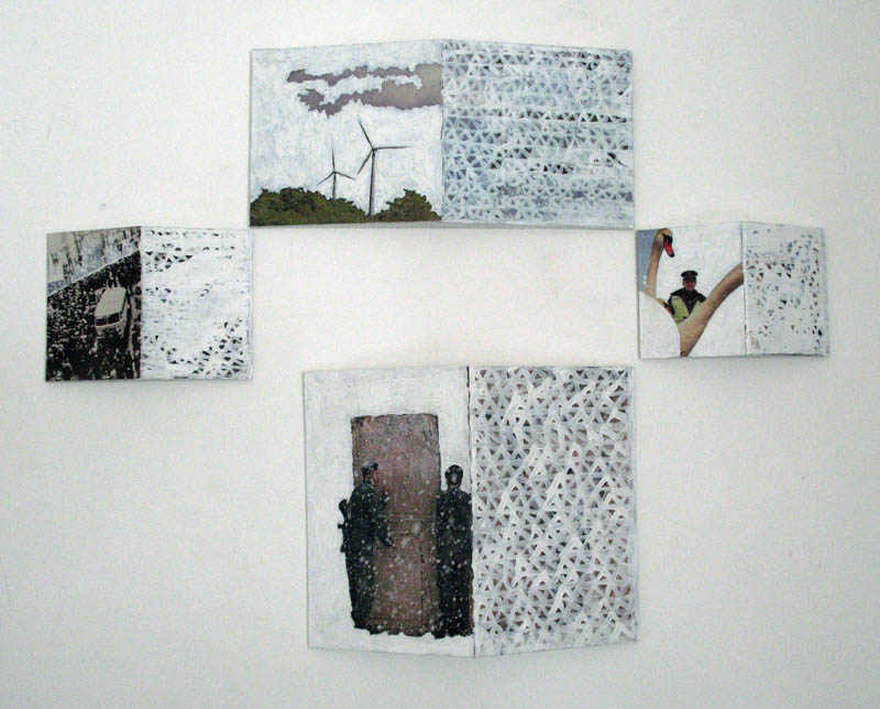 Nie są to jednak bynajmniej zdjęcia autorstwa Wróblewskiego, a fotografie wycięte z różnego radzaju gazet, które artysta z zapałem gromadzi od wielu lat. Co więcej układa je tematycznie w teczkach podzielonych m.in. na reportaż, sport, historie, religie. Segregacja ta dokonuje się także na poziomie mentalnym – w ten sposób Wróblewski uporządkowuje nadmiar informacji, którymi zalewają nas media i pozbywa się poczucia chaosu. Artysta o swojej manii gromadzenia wycinków z gazet pisze: „Obsesyjny proces zbierania i przetwarzania gazetowych obrazów jest rodzajem recyklingu masy wrażeń, informacji, nowinek, sensacji, które osaczają mój zmysł wzroku. Materializuję w ten sposób wielość wrażeń, jakimi jestem nieustannie zarzucany. (...) Panuję nad masą wizualnych bodźców, ponieważ nadaję im własny kształt.” Wykorzystane w obrazach zdjęcia artysta przetwarza – niektóre ich partie zamalowuje białą akrylową farbą - w ten sposób zmienia sens fotografii lub uwypukla interesujący go apsekt.