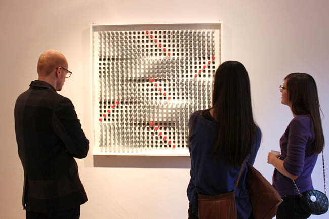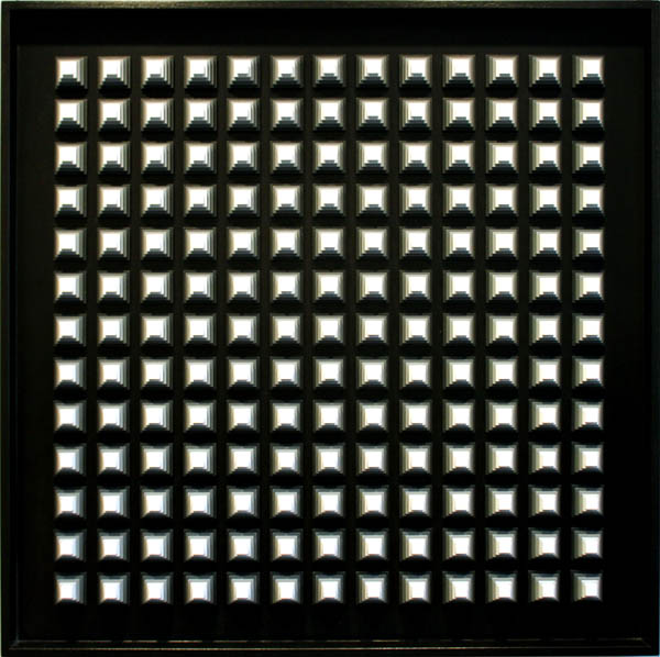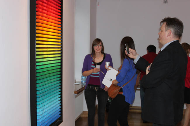 Obrazy-reliefy, które Pakalski pokazał w Promocyjnej w swojej formie i poszukiwaniach artystycznych przypominają też op art. Najważniejsze w jego pracach są przestrzeń, światło i rytm. Artysta posługuje się trójwymiarowymi kwadratami grupowanymi w różnych wariacjach. Nie ogranicza się jednak tylko do czerni i bieli jak to robił Winiarski. Wręcz przeciwnie, stosuje wszystkie barwy tęczy a poszczególne kwadraty układa według kolorów w różne wzory.