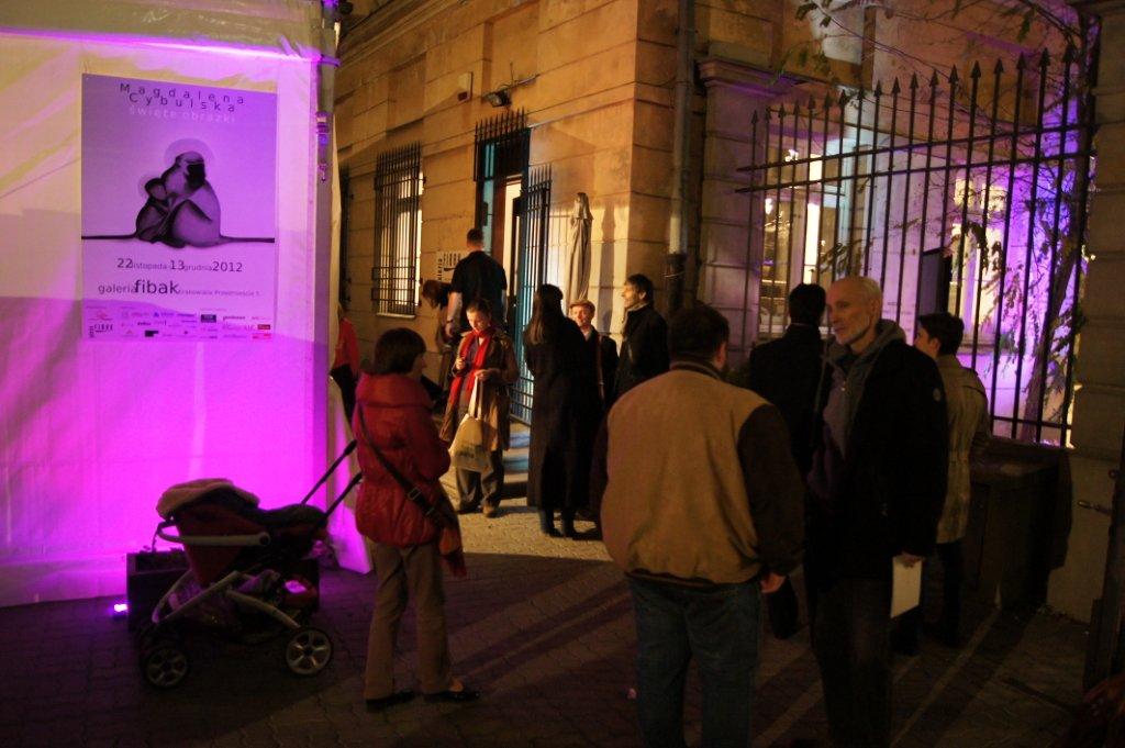 Wystawa „Święte obrazki” Magdaleny Cybulskiej to efekt rocznej pracy artystki. Dwadzieścia obrazów zgromadziło audytorium, które już przed rozpoczęciem wernisażu wypełniło szczelnie galerii. Obecni byli przedstawiciele świata sztuki i biznesu oraz kolekcjonerzy. Wśród gości pojawili się również znani aktorzy oraz sportowcy. Kilka minut po godz. 19., powitał gości założyciel galerii – Wojciech Fibak, który podkreślił, że wystawa prac Magdy jest godnym uwieńczeniem jedenastoletniej historii jego Galerii. Wśród otwierających nie zabrakło profesor Europejskiej Akademii Sztuk Barbary Szubińskiej, pod której czujnym okiem Magda zdobywała umiejętności. Szubińska wyraziła zachwyt głębokością przemyśleń, czystością motywów i światłem „Świętych obrazków”.