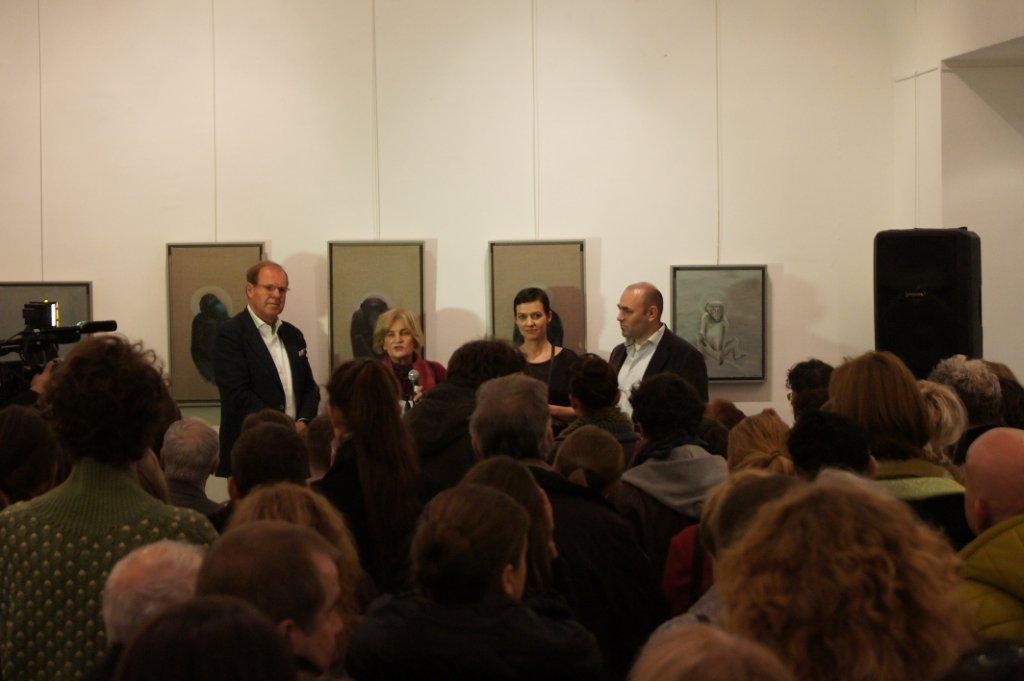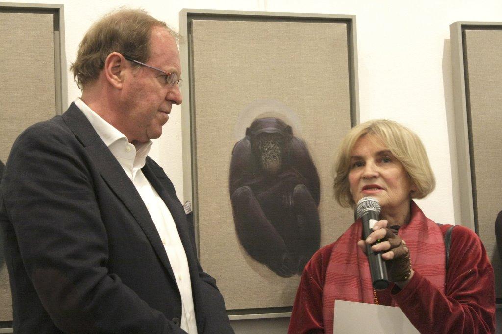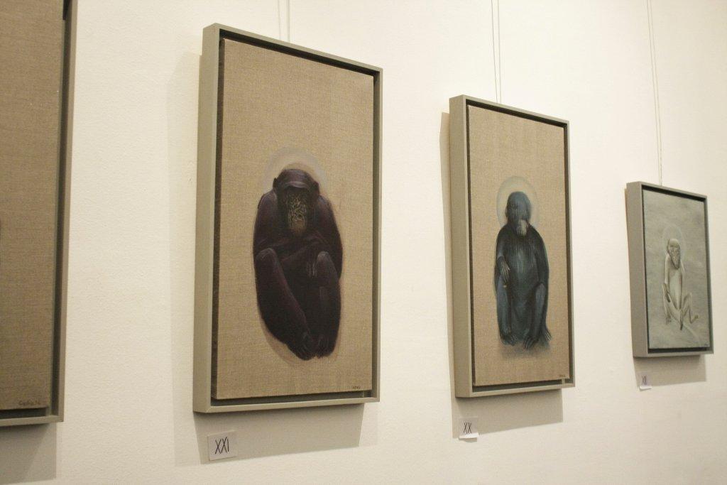 Kontrowersyjny może wydać się motyw przewodni wystawy, którym jest obecny na wszystkich obrazach wizerunek małp otoczonych aureolą. Ten dysonans świętości i pierwotnych instynktów, najwyższych wartości i nierozumnych przejawów ewolucji, wywoływać może różnorodne skojarzenia i emocje. Choć oszczędne w formie, tylko pozornie niosą ze sobą równie prostą treść. Nie należy ich szeregować na podstawie szybkiego obejrzenia wystawy.