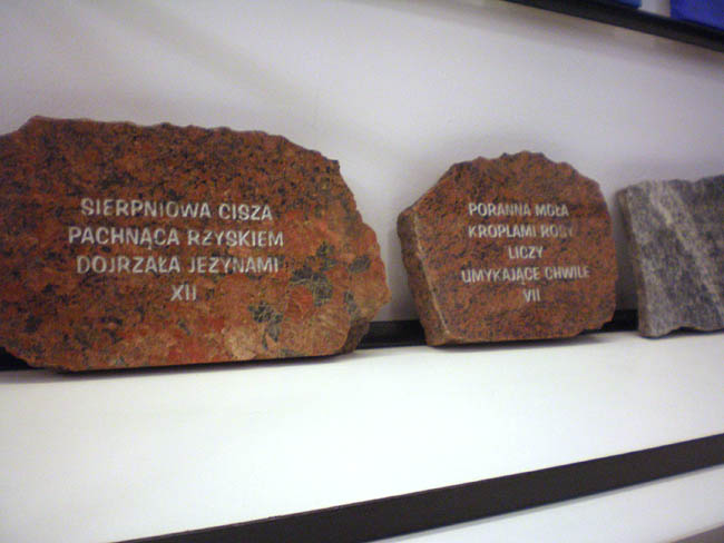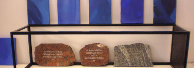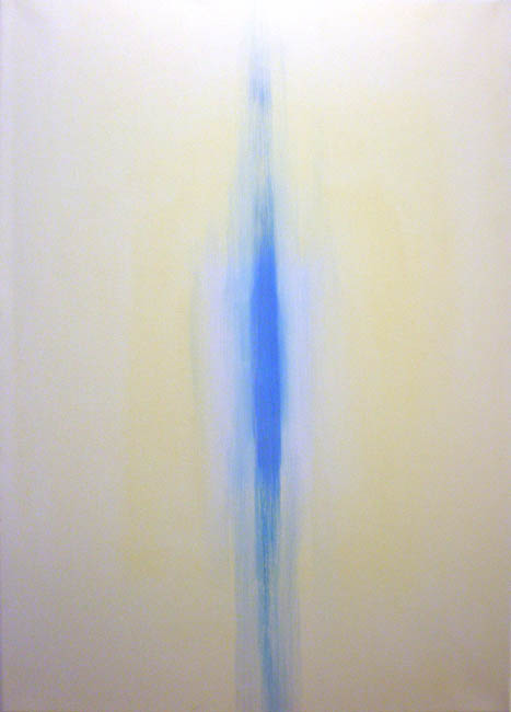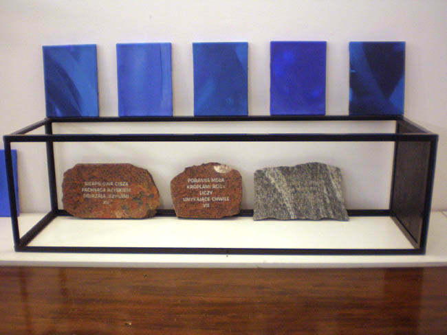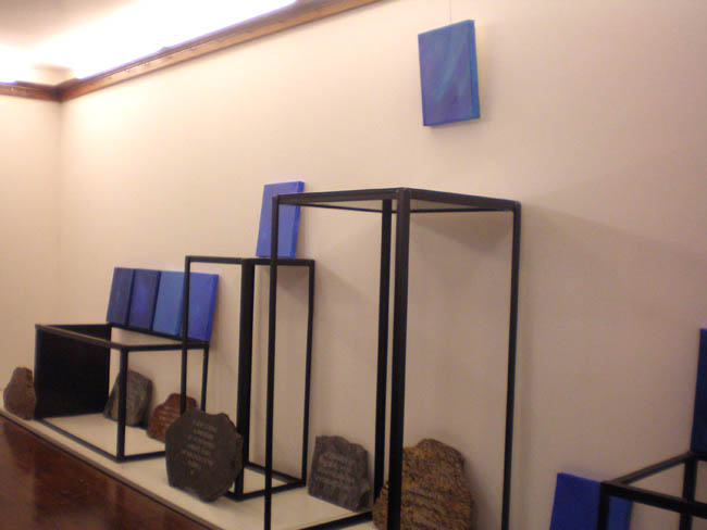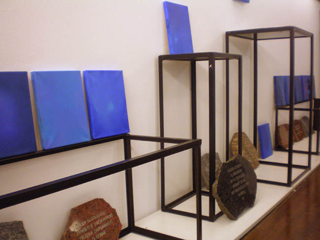 Artystka ukończyła Akademię Sztuk Pięknych w Warszawie (1992)., w pracowni prof. Jana Tarasina; aneks w pracowni prof. Ryszarda Winiarskiego. Wystawa stanowi prezentację najnowszych prac nawiązujących do tworzonego od 2003 roku cyklu Przestrzenie błękitu i Inne spojrzenie. Są to monochromatyczne płótna, w których dominuje błękit. Obrazy nie mają tytułów, łączy je natomiast wspólna idea poszukiwania w odcieniach błękitu sensu życia i artystycznej ekspresji; interesujący jest zastosowany przez Artystkę pomysł umieszczania cytatów na kamiennych płytkach pod obrazami. W czasie wernisażu prezentowane były również wiersze Magdy Raczko, które stanowią dopełnienie prezentowanych prac malarskich.