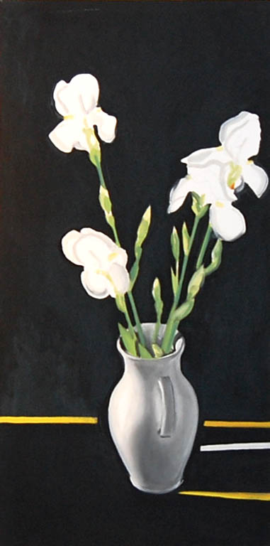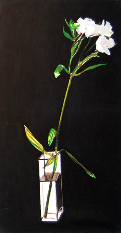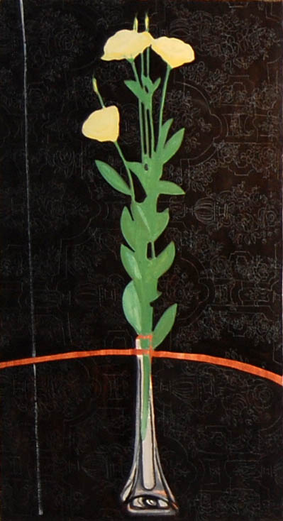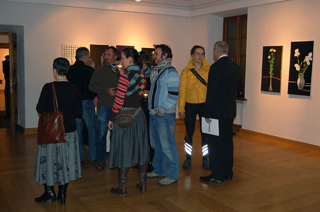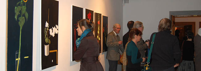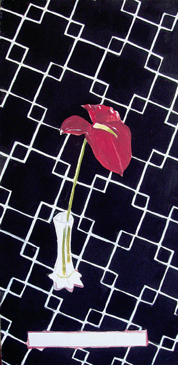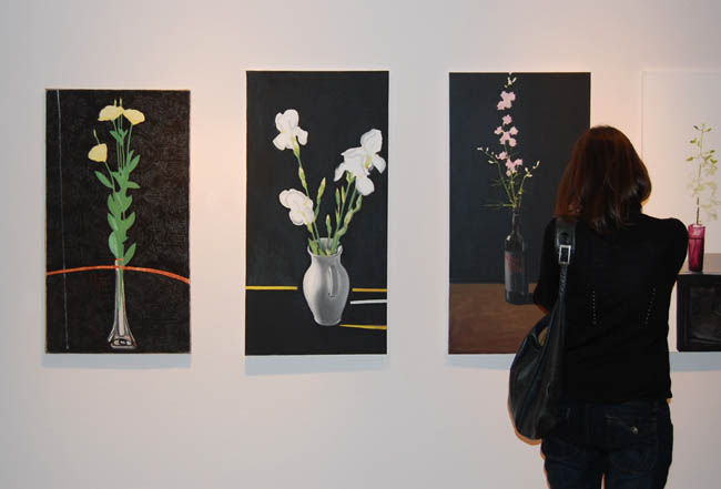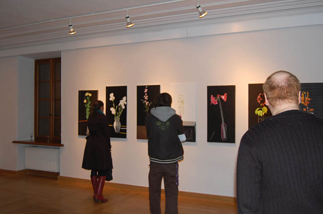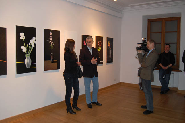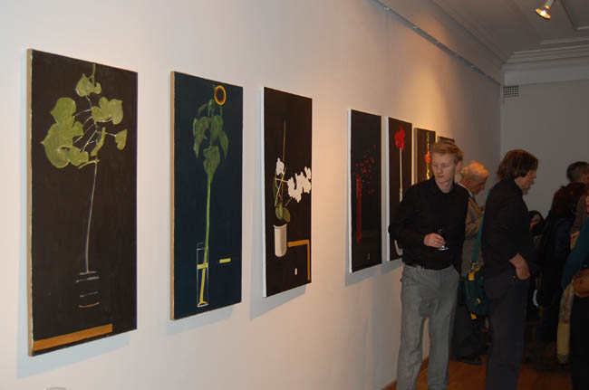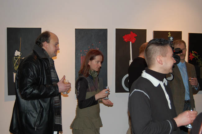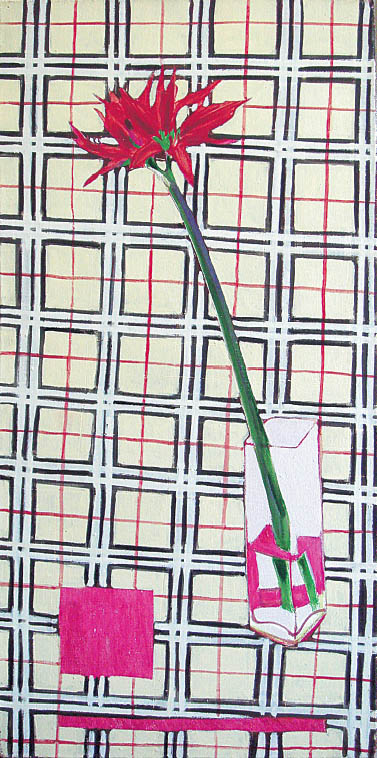 Artystka, rocznik 1969, studiowała w Akademii Sztuk Pięknych w Warszawie na wydziale Malarstwa 1992-1997. Dyplom uzyskała w pracowni prof. Jana Tarasina w 1997 roku. Tytułowy pretekst zapewne odnosi się do motywu roślinnego jakim jest kwiat. Można, na sztukę uprawianą przez Kazimierską, spojrzeć od drugiej strony, od strony tła. Być może to motyw kwiatu jest tylko pretekstem do ukazania zgeometryzowanego tła i ono jest tak naprawdę tematem głównym. Sygnałem do takiego punktu odniesienia dają same tytuły prac, jak: "Astro kwadraty", "Biały czarna krata". Artystka zamyka swoje obrazy w pionach. Kwiat zdaje się być dominującym motywem, ale tak do końca nie jest. Raz artystka bardzo dba o szczegóły płatków, roślina jest namalowana z dokładnością fotograficzną, prawie wychodzi z płótna. Innym razem, kwiat jest lekko zarysowany, ledwo widoczny na obrazie. Tło natomiast jest zawsze mocno zaznaczone, z dominującymi motywami geometrycznymi. Można się w tych motywach doszukać powiązań z obrusem, tapetą. Jest to jednak element umowny, bo tak naprawdę żaden z wazonów nie stoi na stole, czy półce. Ten element kompozycyjny jest tylko zaznaczony, najczęściej grubą poziomą kreską. Sama roślina nie ma racji bytu na obrazach Magdaleny Kazimierskiej, dopiero tło stwarza obraz, dominuje nad tematem przewodnim. Artystka przeciwstawia elementy roślinne z silną geometryzacją w postaci płaskich, wręcz ażurowych kwadratów. Obrazy prezentowane w Galerii Promocyjnej, namalowane są w technice olejnej na płótnie.