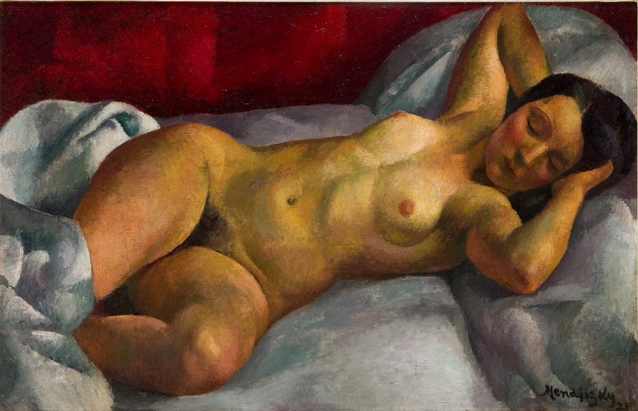 Malarstwo łódzkiego artysty na wystawie zostało zaprezentowane w trzech odsłonach. Pierwszą część reprezentowały licznie portrety i akty. Najwcześniejsze prace z okresu paryskiego, to właśnie portrety, które miały przynieść artyście rozgłos. Do najciekawszych należą niewątpliwie wizerunki partnerki artysty Alice Ernestine Prin, powszechnie znanej nieco później jako Kiki de Montparnasse. Z tą słynną muzą Montparnasse’u Mędrzycki związany był w latach ok. 1918-1921. Autorzy wystawy pokazali nie tylko słynny akt leżącej Kiki z 1921 roku, ale także nowe, nieznane dotąd jej portrety. Znana w latach 20. XX wieku jako „Królowa Montparnasse’u” Kiki pozowała także do dzieł malarskich autorstwa m.in.: Kislinga, Foujity, Van Dongena, Gwozdeckiego. Jej wizerunek utrwalali również rzeźbiarze - w tym Pablo Gargallo oraz Alexander Calder. Postać Kiki najbardziej znana jest jednak z foto-kolaży i filmów Man Raya, z którym była związana po rozstaniu z Mędrzyckim. Krytycy pisali o niej, iż uosabiała, jak nikt inny, Paryż lat 20. We wstępie do wspomnień Kiki de Montparnasse wydanych w 1929 roku, Ernest Hemingway pisał, iż Kiki: dominowała nad erą Montparnasse’u jeszcze wyraźniej, niż królowa Wiktoria nad epoką noszącą jej imię.