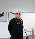 Jedną z atrakcji wernisażu było właśnie pisanie obrazu przez artystę. I to nie jednego, bo aż czterech, przeznaczonych głównie jako dary dla NCK. Co zaskakiwało, to pozorna łatwość wykonania takich obrazów. Bliżej nieodgadnione ślady na papierze pozostawiane przez płynne, powolne ruchy pędzla, szybko zmieniały się w konkretne przedstawienia.